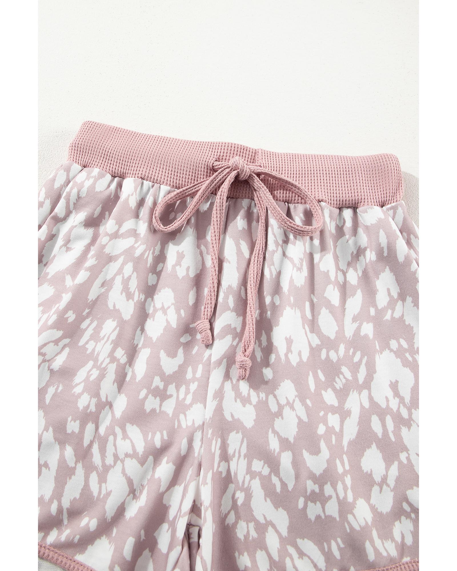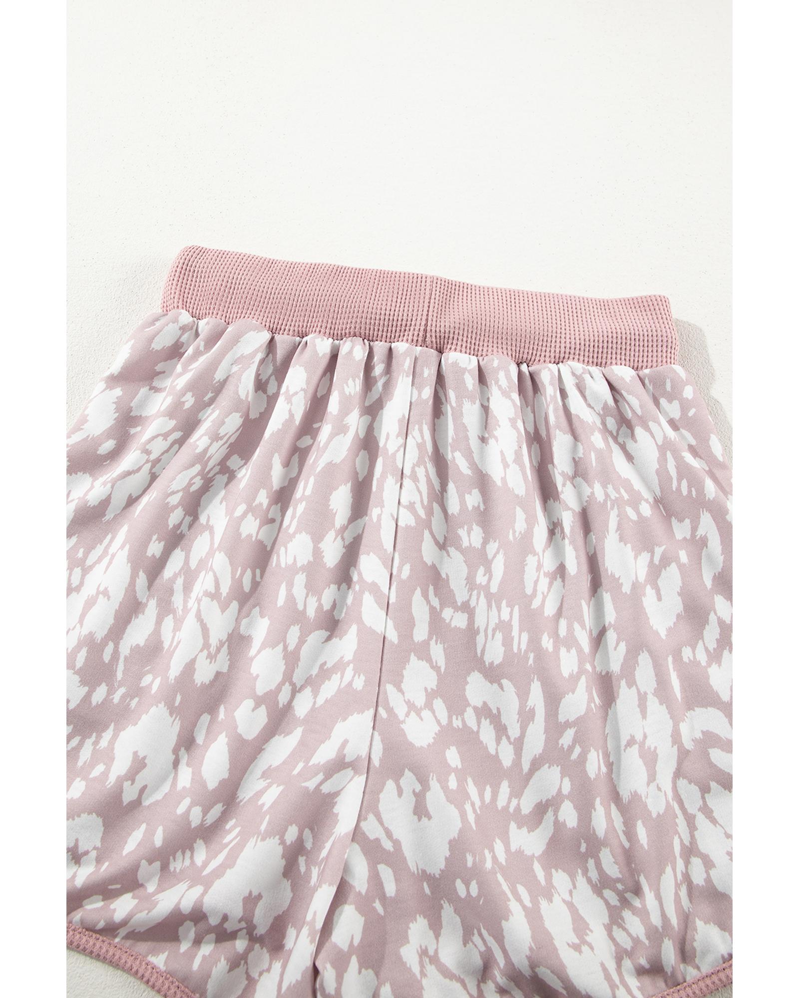 Khaki Classic Leopard Arched Hem Elastic Waist Casual Shorts – L