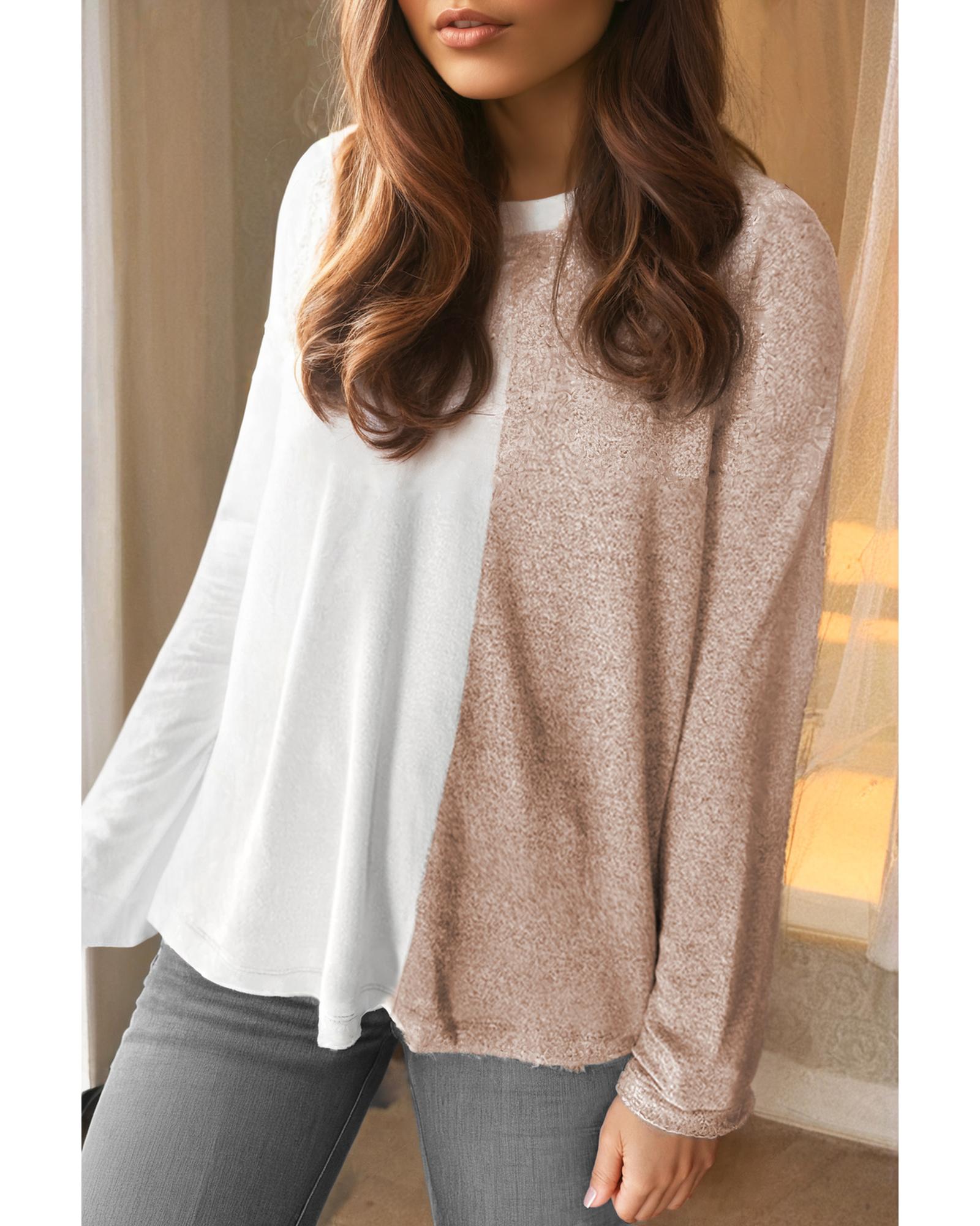Khaki Colorblock Long Sleeve Crew Neck Top – L
