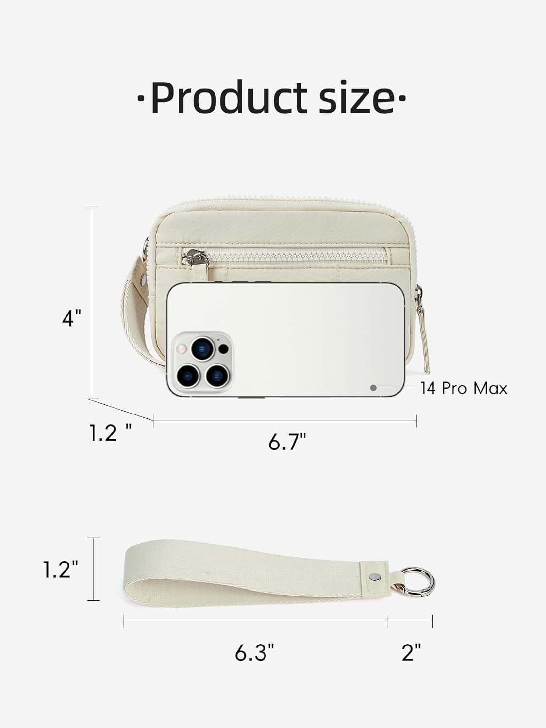 - Dimensions: 6.7 x 4 x 1.2 inches (phone pouch); 6.3 x 2 x 1.2 inches (wrist strap)