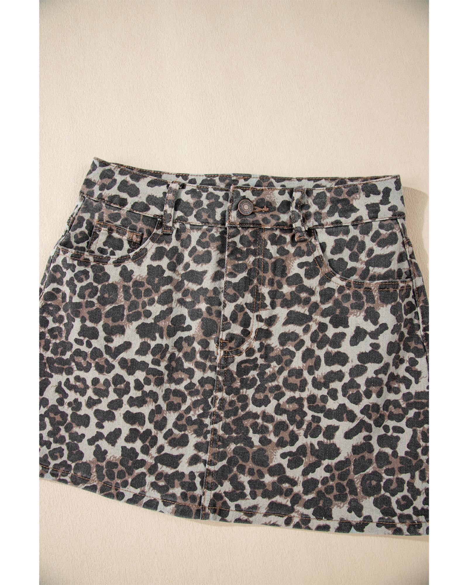 White Leopard Frayed Hem Denim Shorts - 8 US