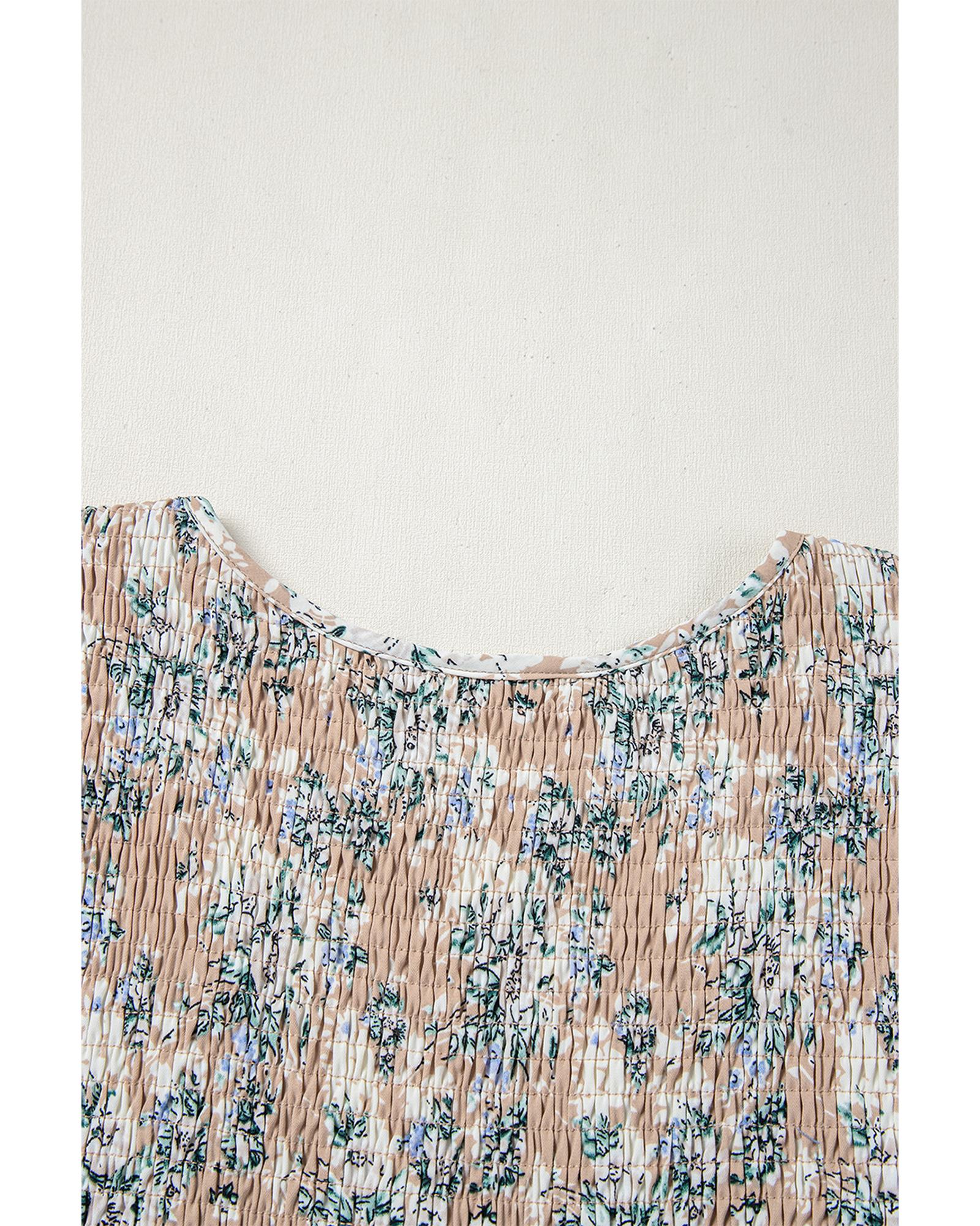 • Khaki Maple Grove Floral Smocked Puff Sleeve Long Dress