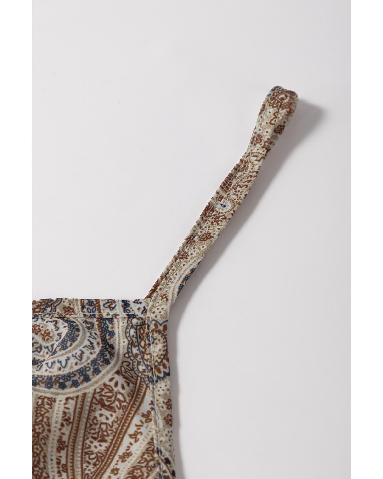 Khaki Paisley Printed Spaghetti Strap V Neck Smocked Babydoll Tank Top – S