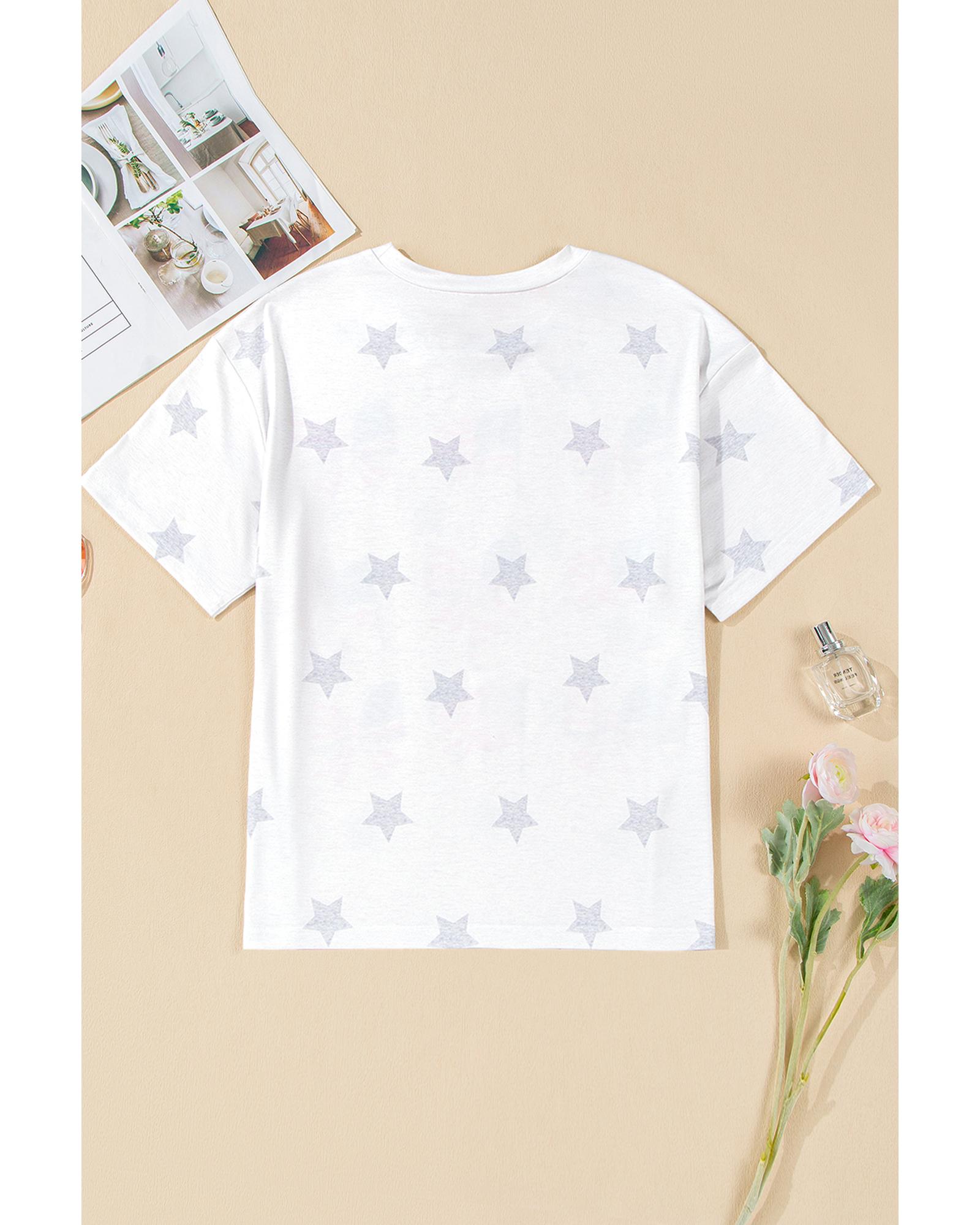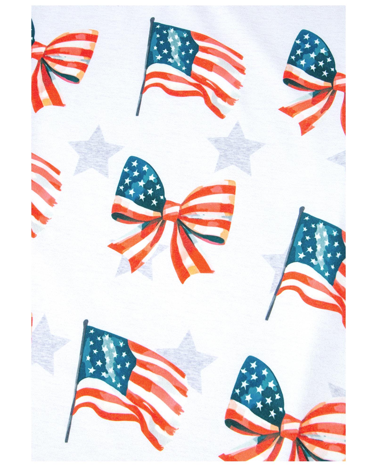- Khaki Patriotic Flag Bow Graphic Starry Round Neck T
