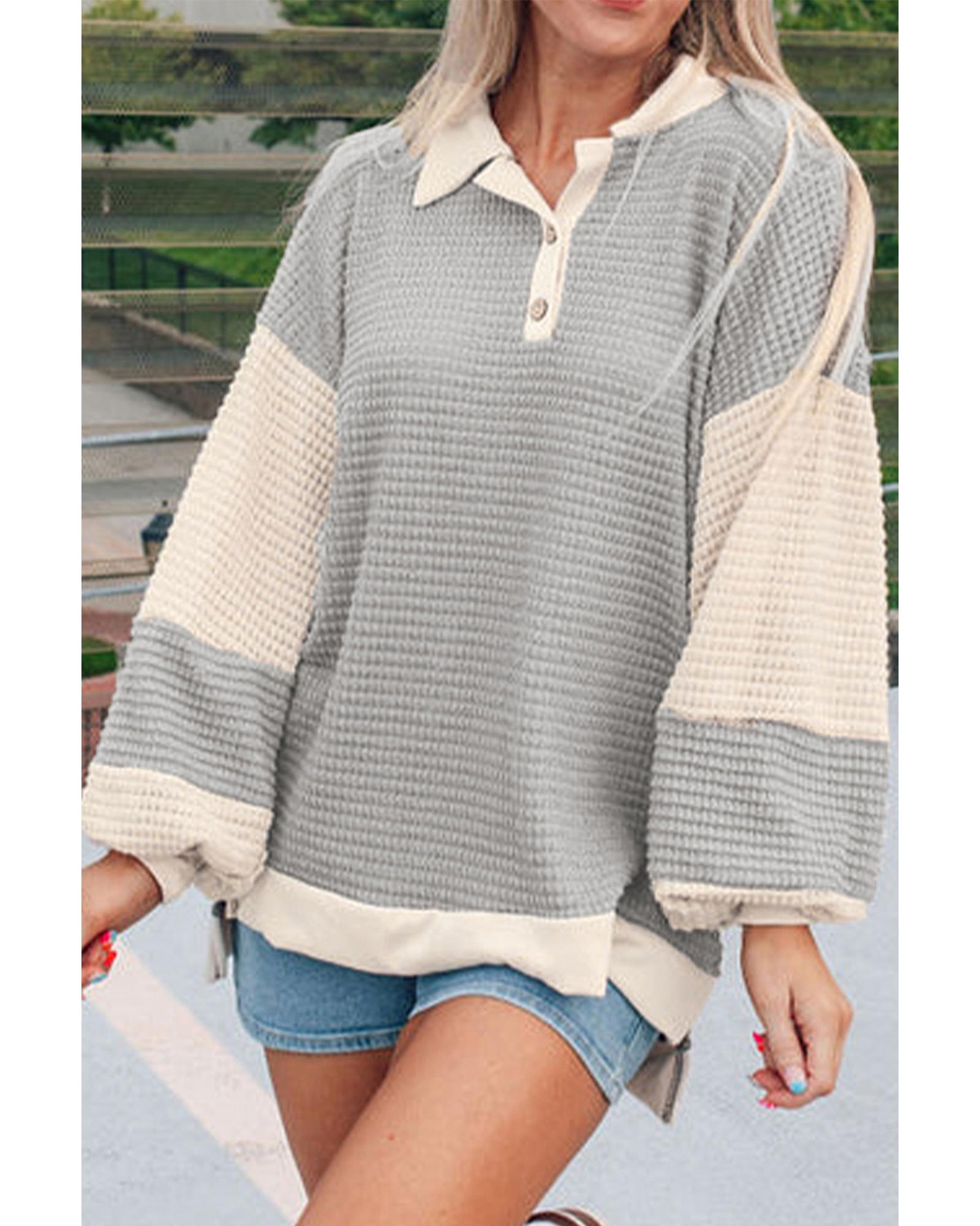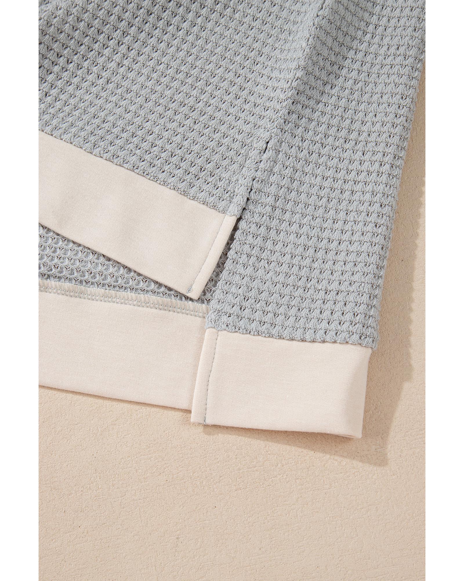 Mineral Blue Solid Waffle Knit Patchwork Raglan Sleeve Sweatshirt - L Original price was: $74.99.Current price is: $40.99.