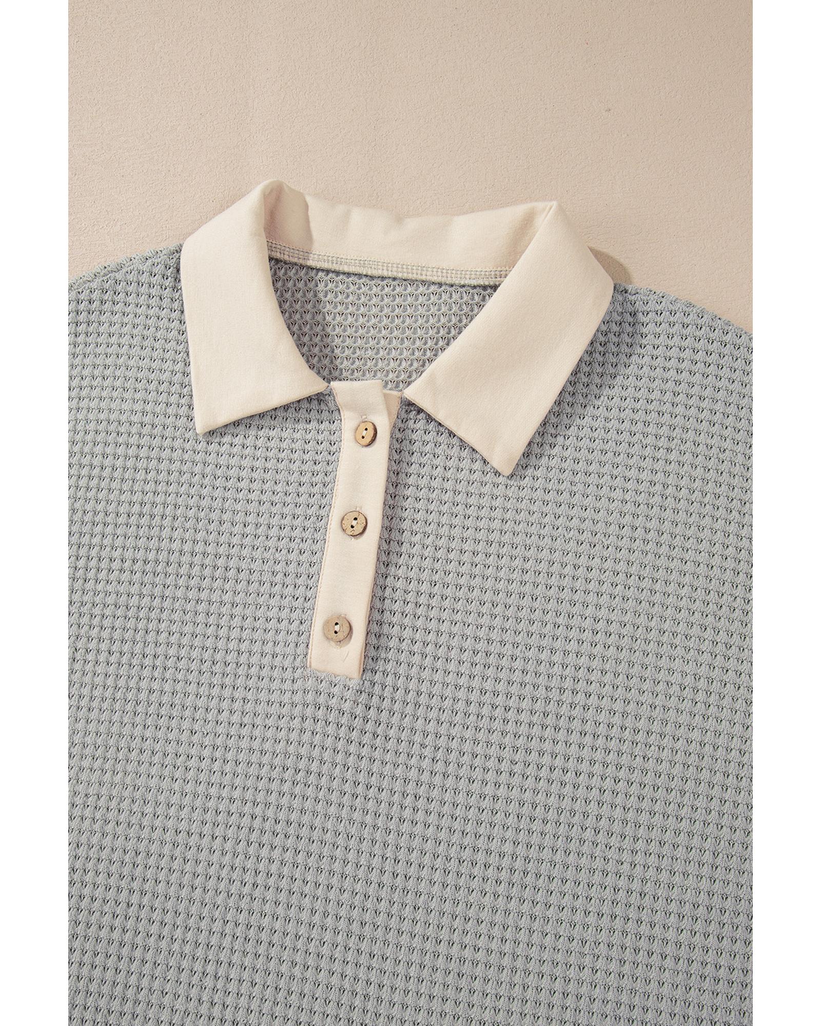 Khaki Textured Colorblock Collared Henley Top – M