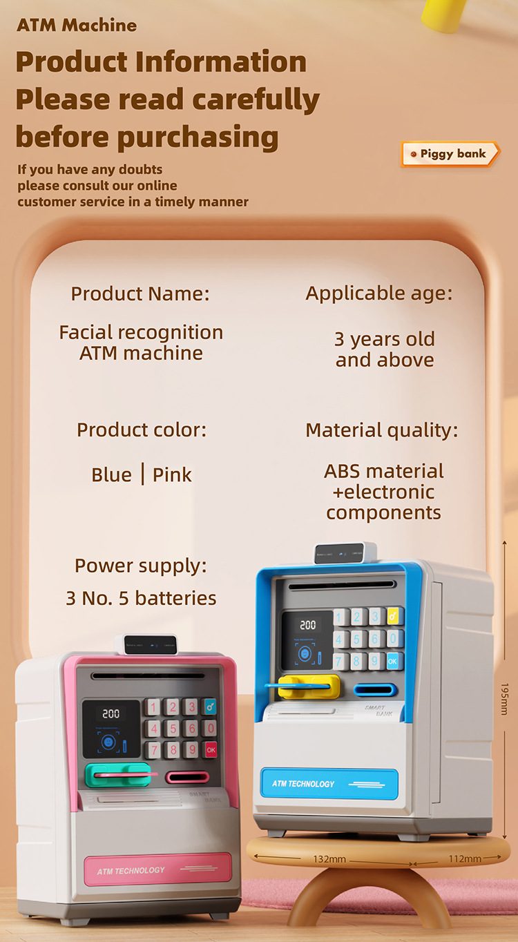 - Product Type: Facial Recognition ATM Machine Toy