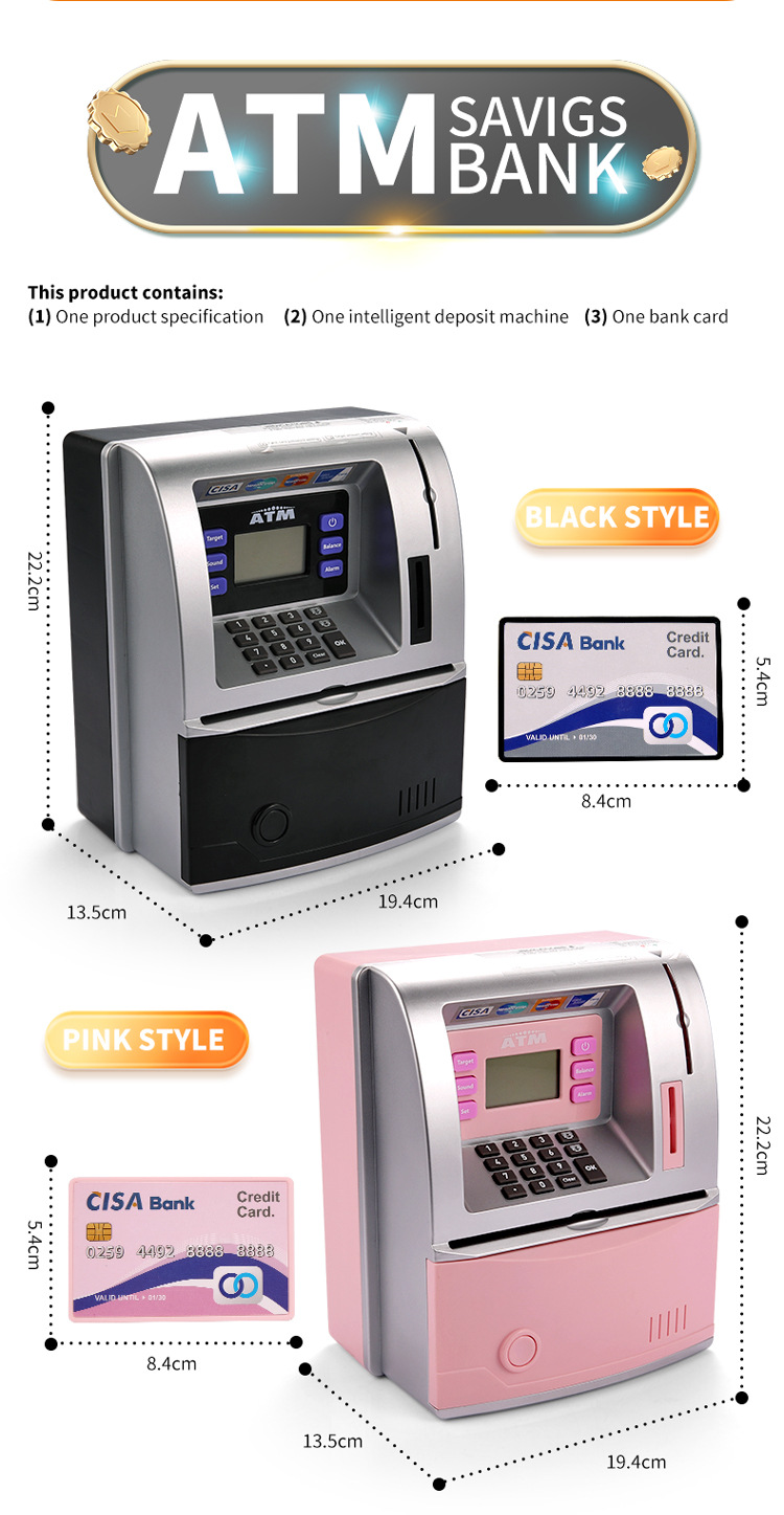 Kids Electronic ATM Savings Bank – Digital Piggy Bank with Password, Auto Roll-in Banknotes & Coin Slot for Financial Learning Fun