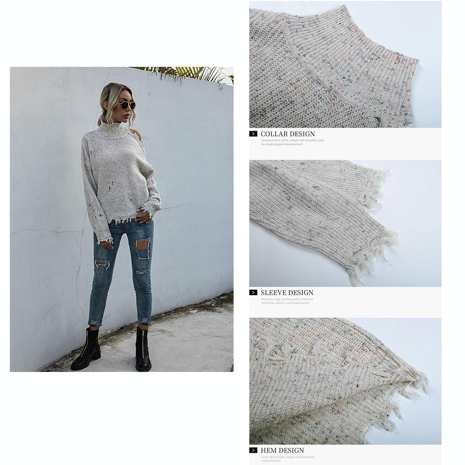 • 1 x Ladies Loose Off Shoulder Ripped Long-Sleeved Turtleneck Autumn Knitted Sweater