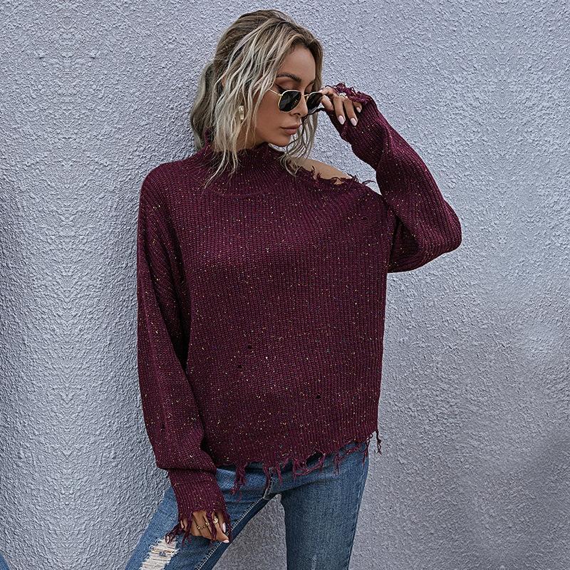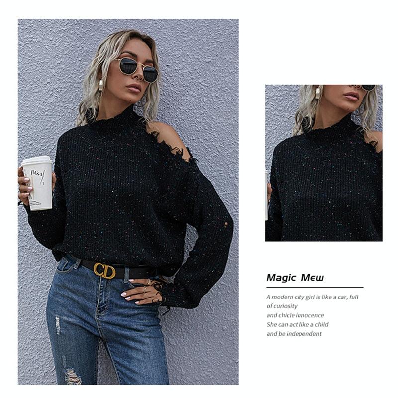 • 1 x Ladies Loose Off Shoulder Ripped Long-Sleeved Turtleneck Autumn Knitted Sweater