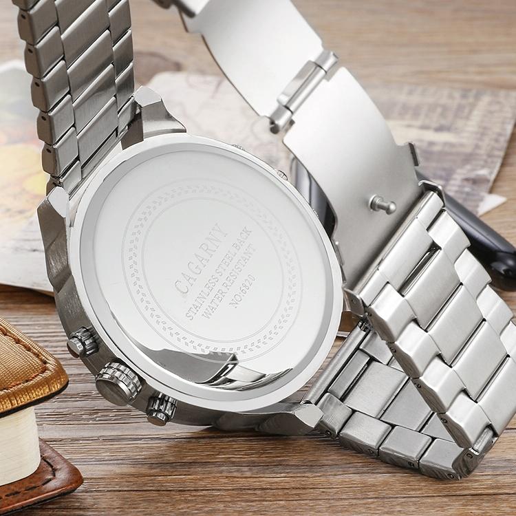 • 1 x 6820 Fashionable Business Style Large Dial Dual Time Zone Quartz Movement Wrist Watch