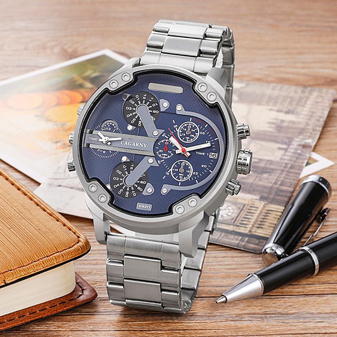 • 1 x 6820 Fashionable Business Style Large Dial Dual Time Zone Quartz Movement Wrist Watch