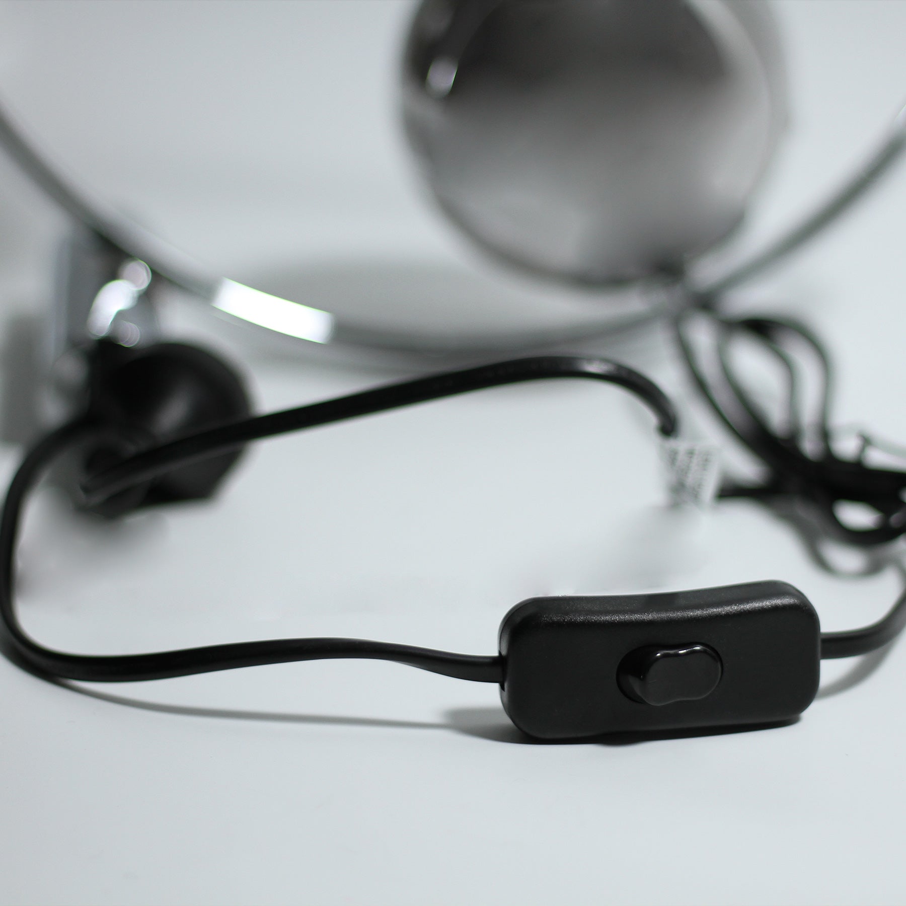 The Larique Table Lamp is a stunning chrome lighting piece that is artistically designed with style. The spectacular round metal frame is balanced with a short horizontal support rod that adds to the aesthetic of the lamp, while the two sphere glass shades finish it off to perfection.Â