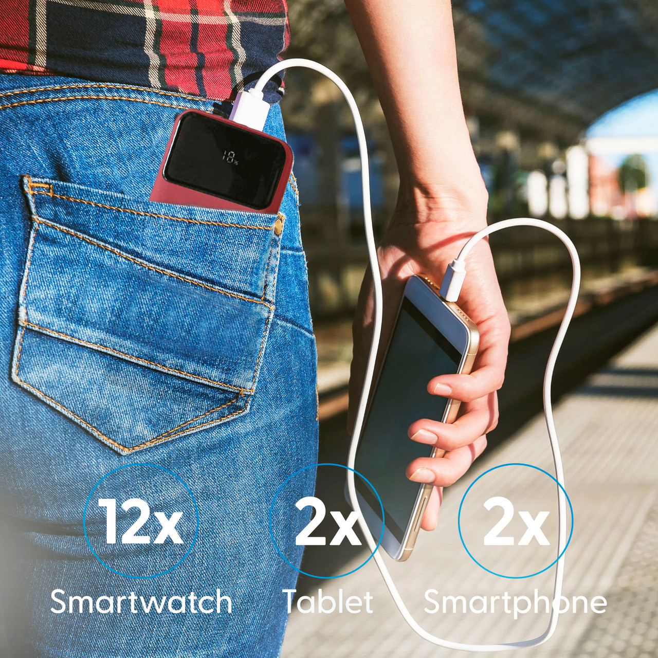 - 10,000mAh – two smartphone charges – or a smartwatch up to 16 times or a tablet up to two times. Ideal for those long days away or extended time away from home/office