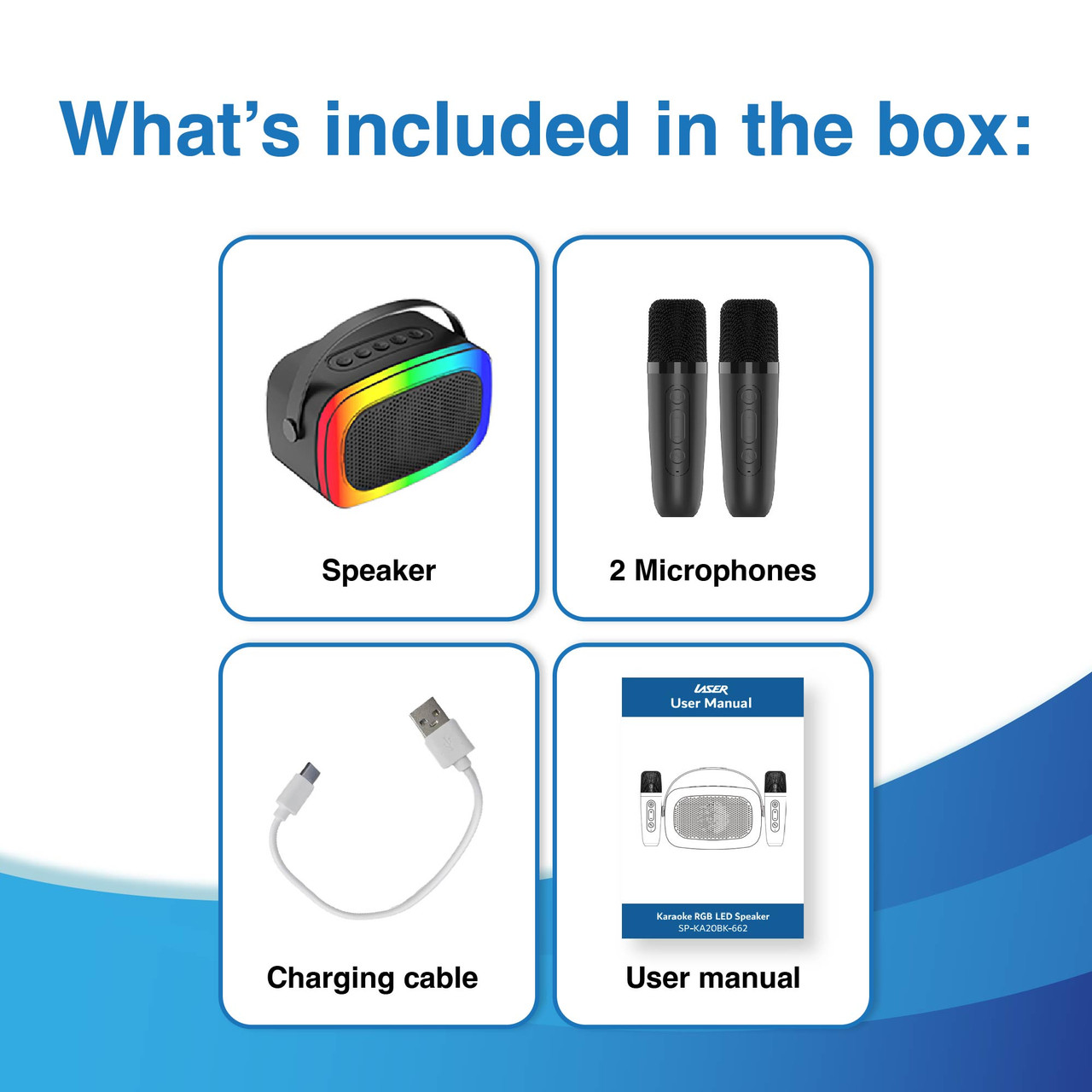 Laser Karaoke RGB Speaker with 2 Wireless Mics