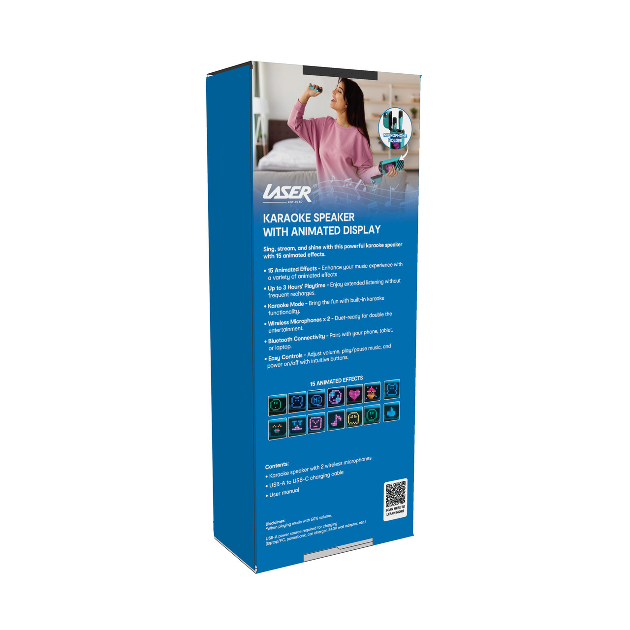 • Vibrant LED Display: Dynamic lighting effects enhance every karaoke session and set the perfect party atmosphere.