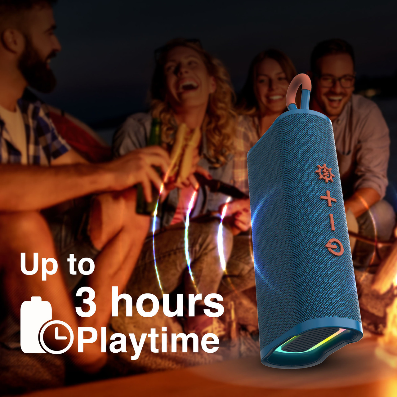 RGB Lighting:The built-in RGB lighting brings a fun, lights to your music, making it perfect for nighttime gatherings, beach bonfires, or backyard hangouts. Its compact design with a carry strap makes it easy to take anywhere, whether it’s attached to a backpack, placed on a picnic table, or carried on the go.