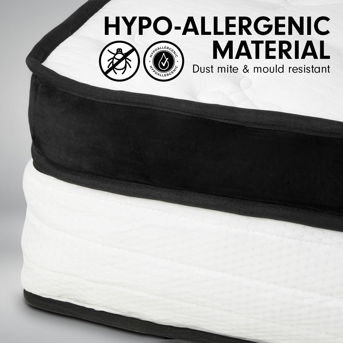 • Hypo-allergenic material – dust mite & mould resistant