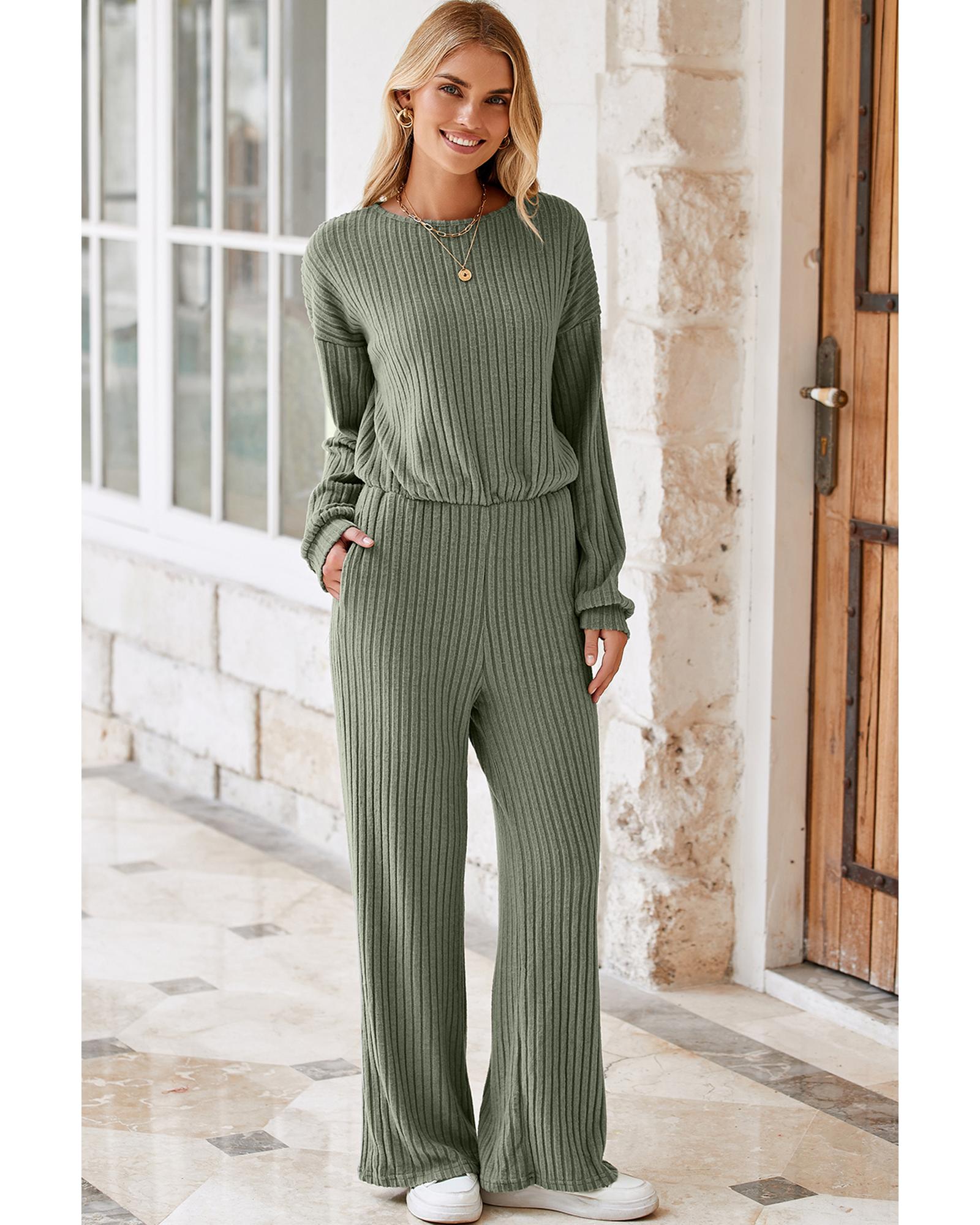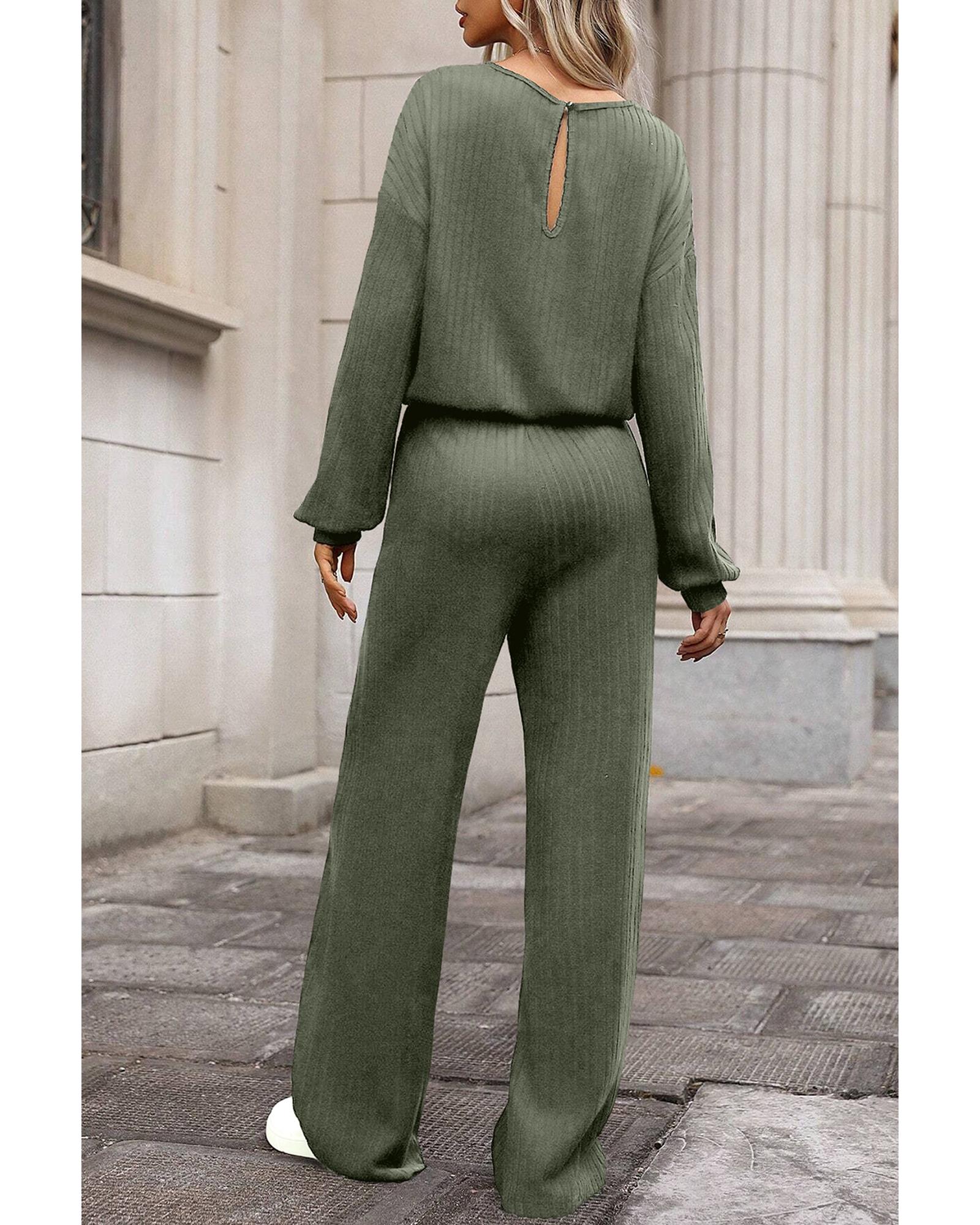 Laurel Green Solid Ribbed Knit Keyhole Back High Waist Jumpsuit – M