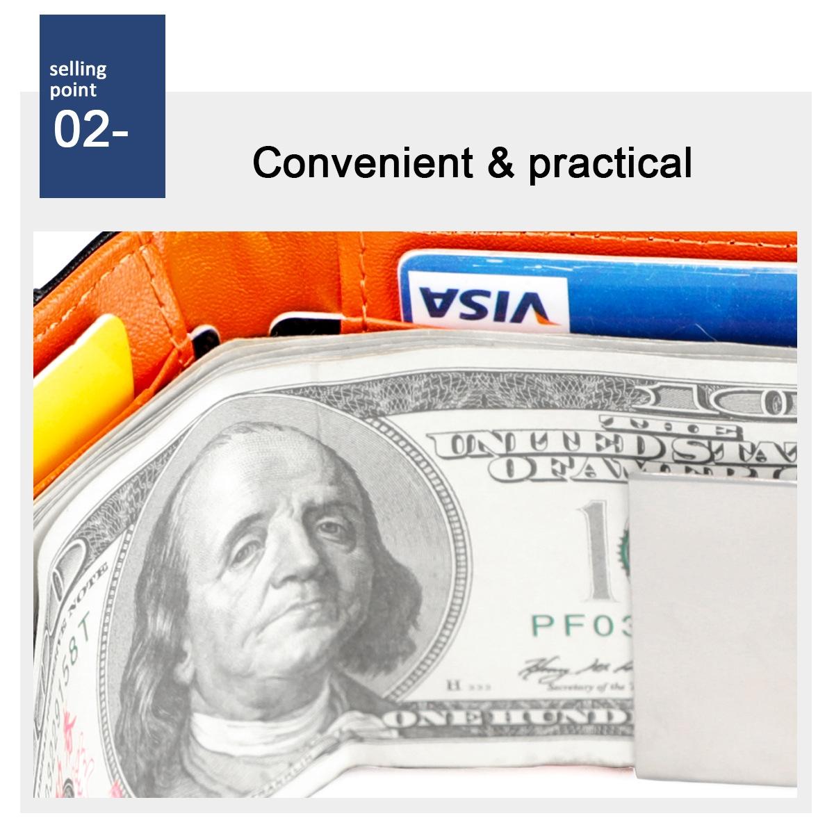 • Multiple compartments for storing mobile phones, cards, photos, cash, coins, and more