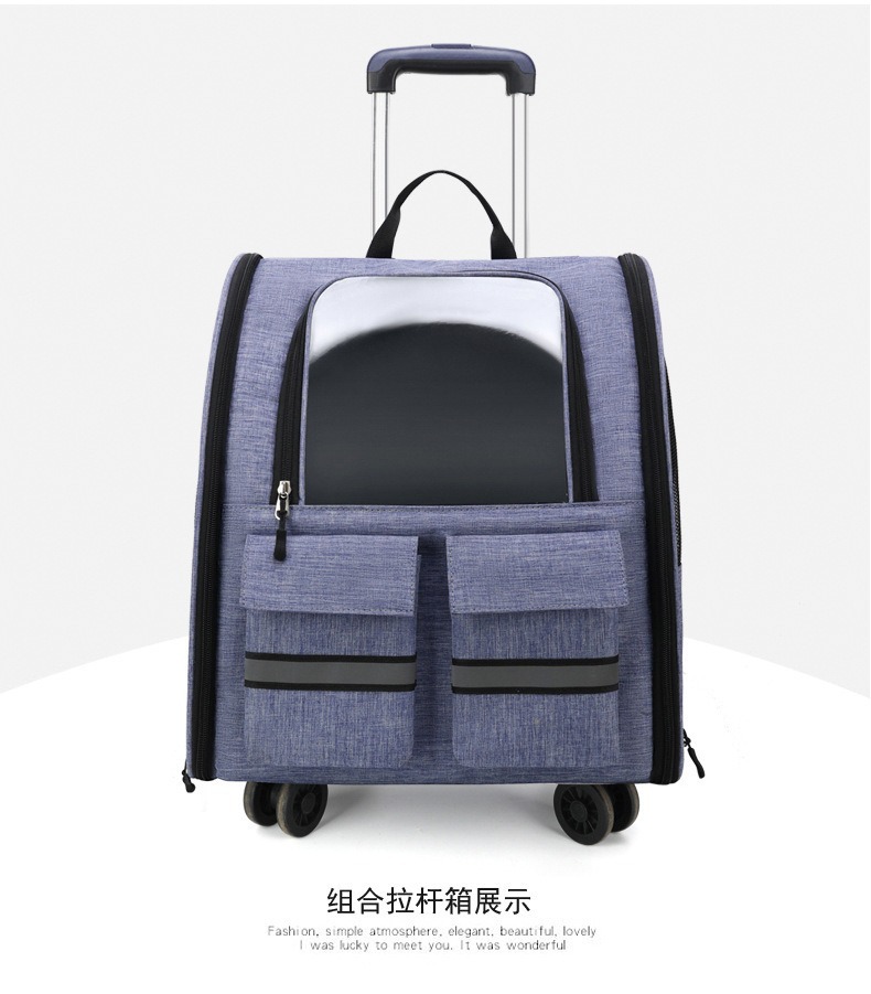 Blue 3-in-1 Pet Carrier: Rolling Backpack with Collapsible Design