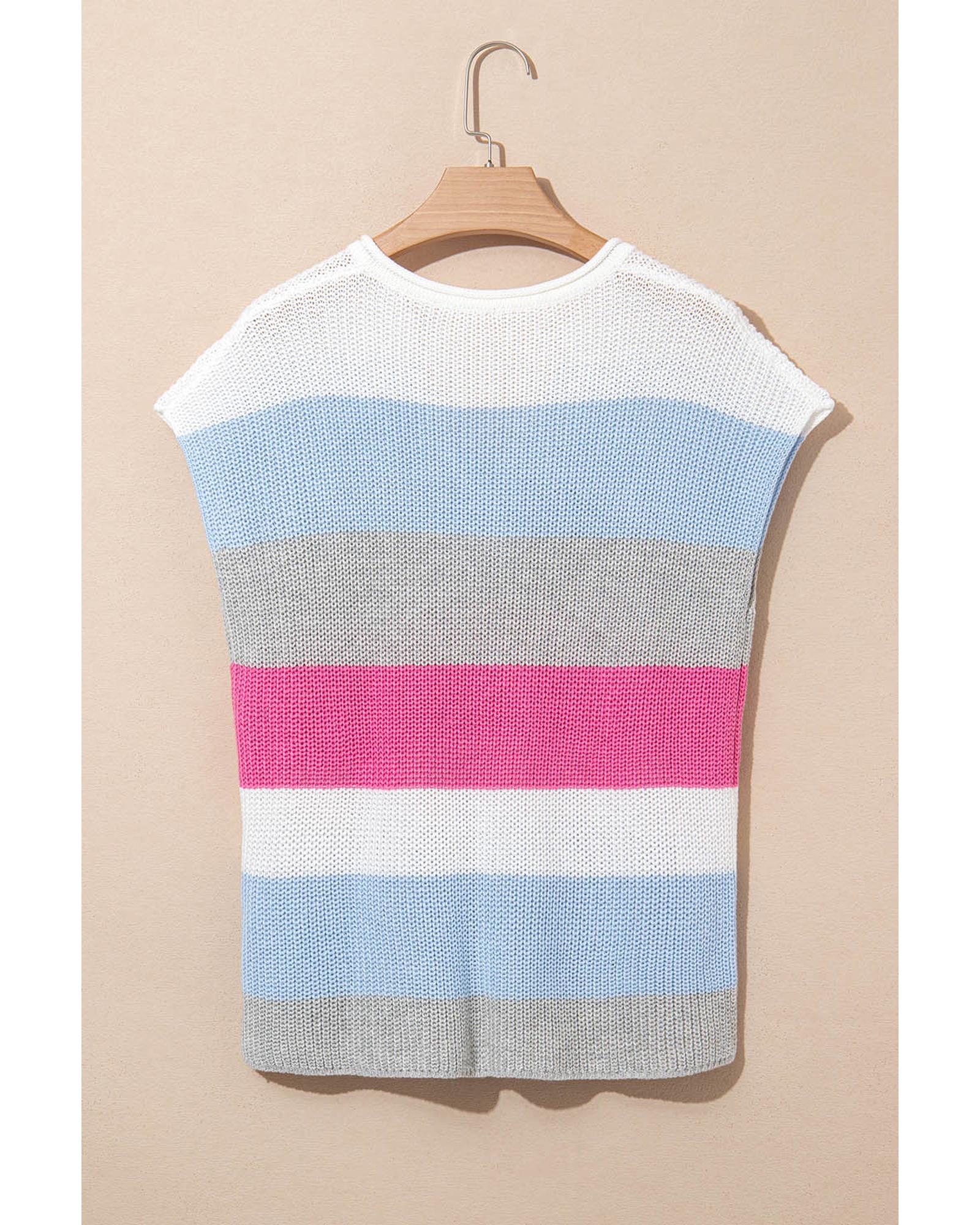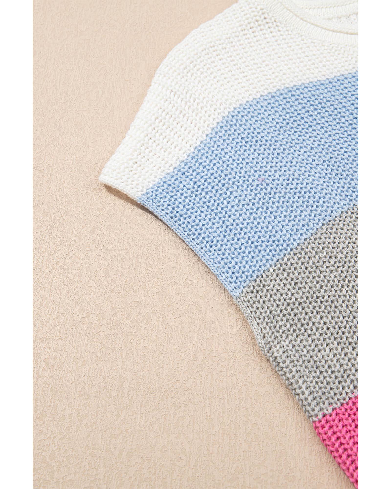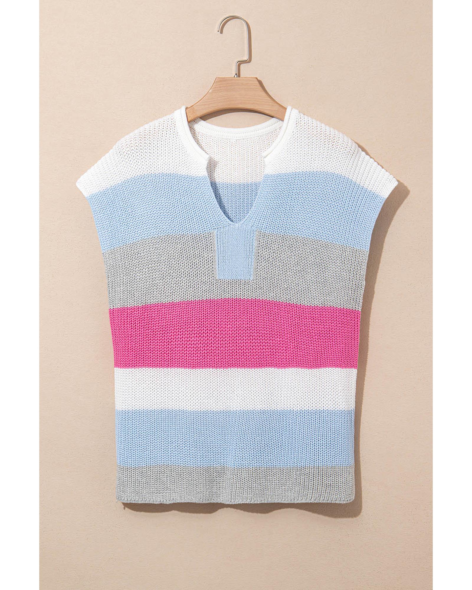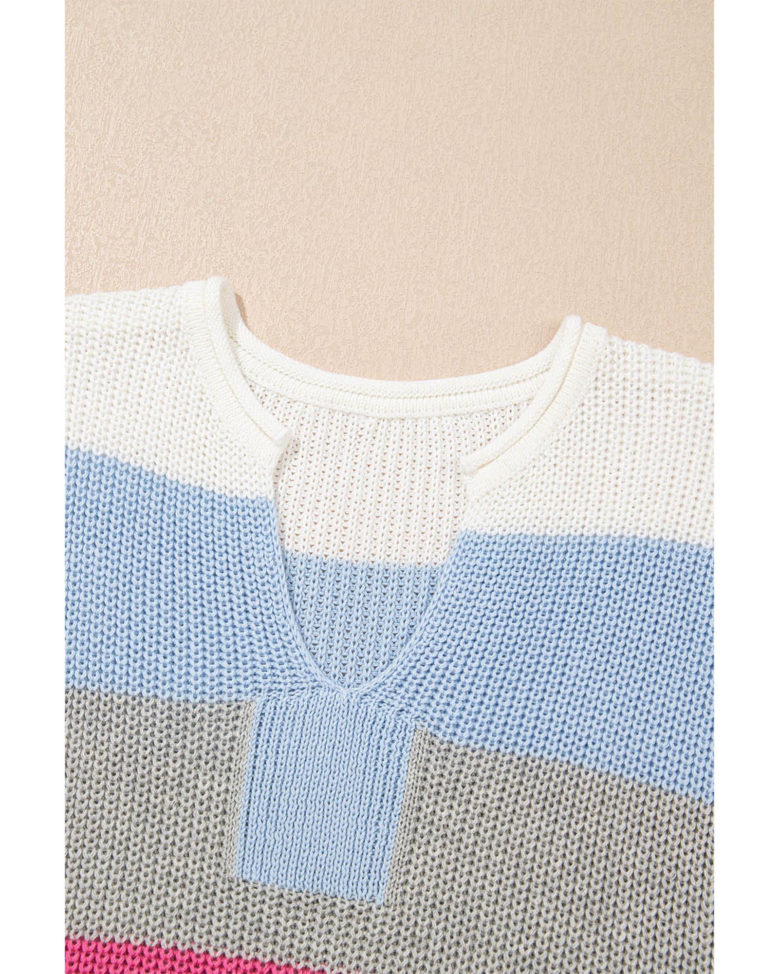 Light Blue Color Block Notch V Neck Sweater T Shirt – XL