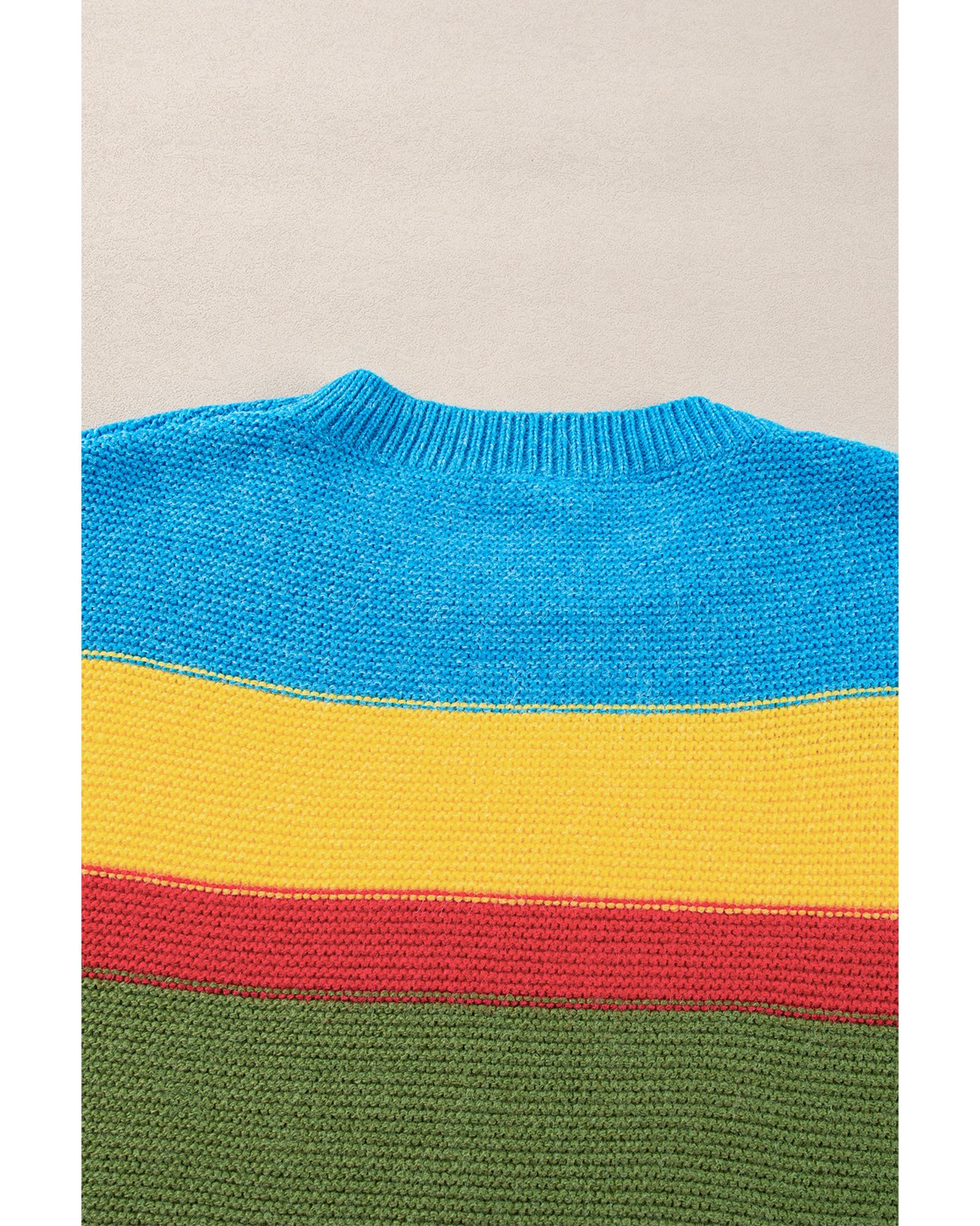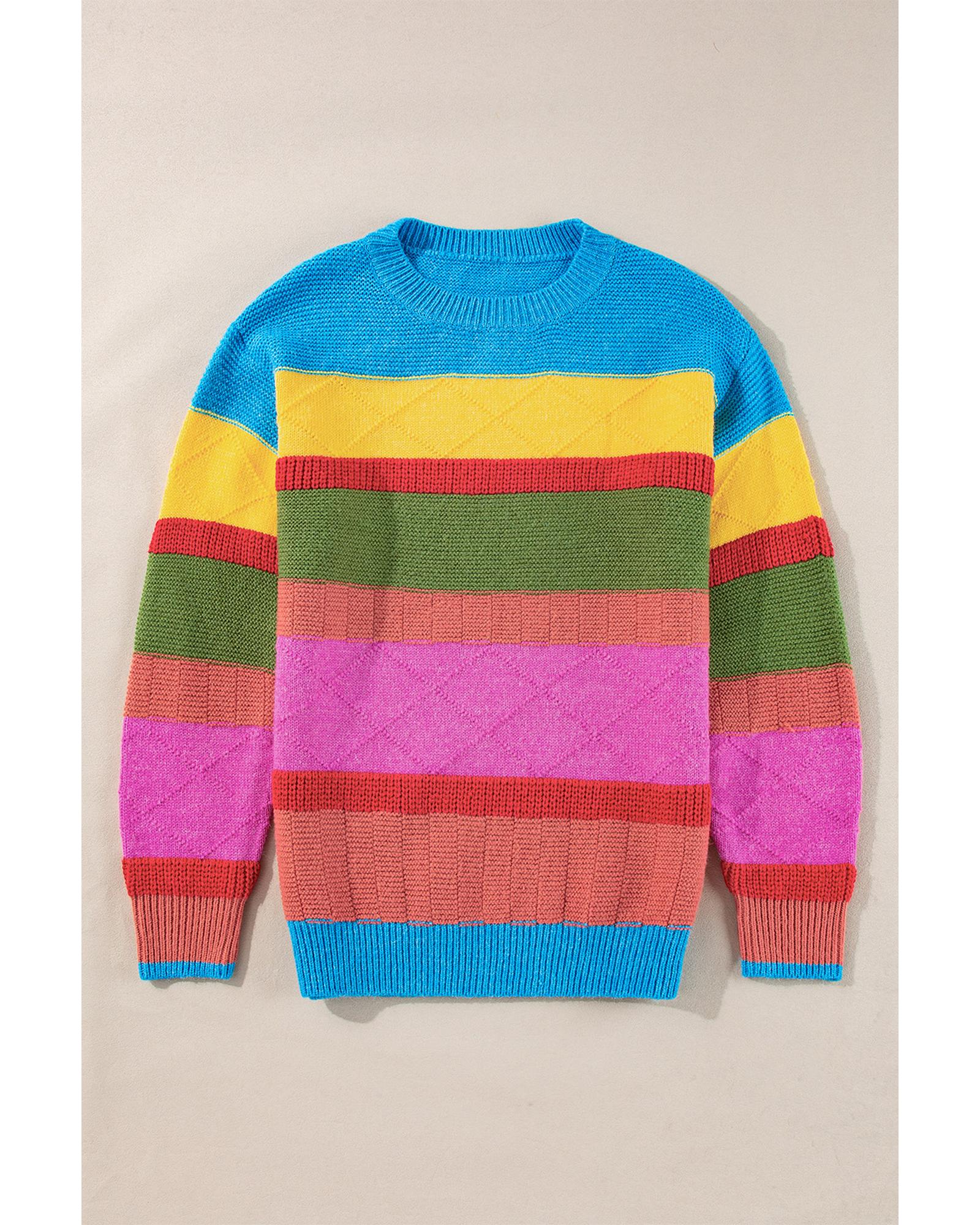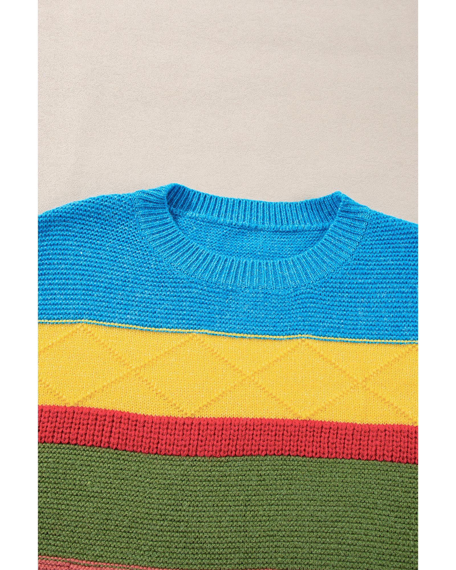Light Blue Colorblock Mixed Textured Drop Shoulder Sweater – S