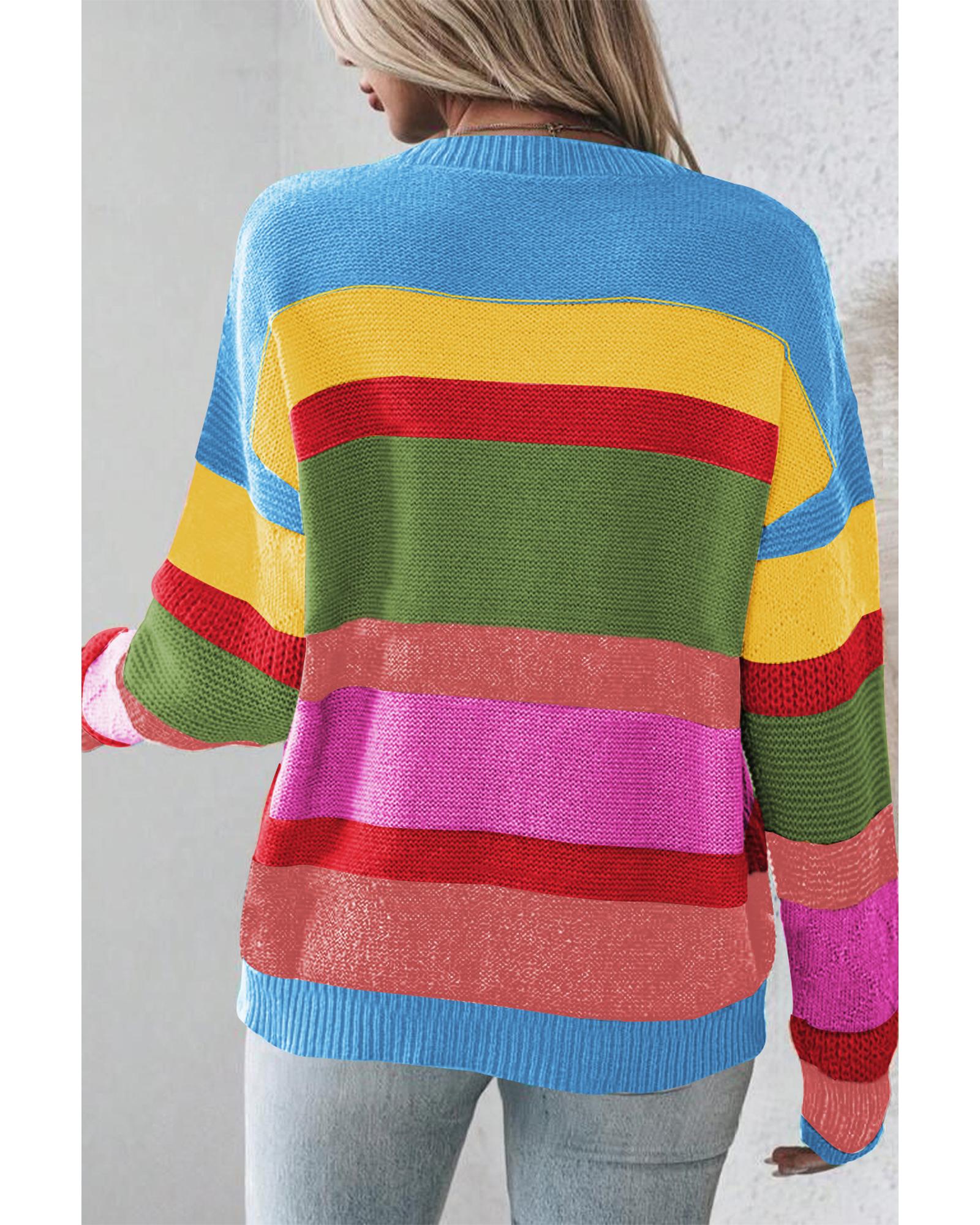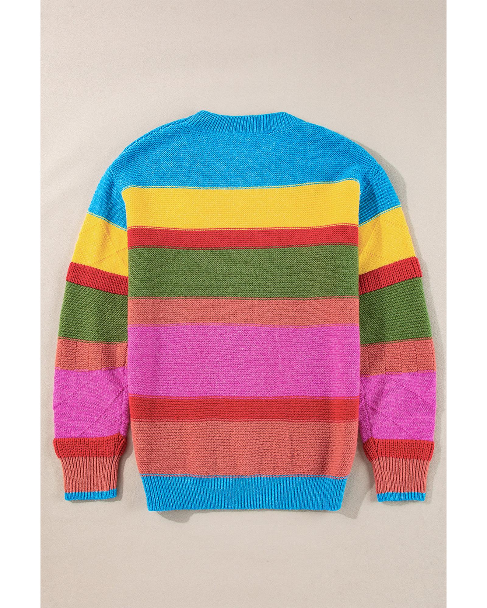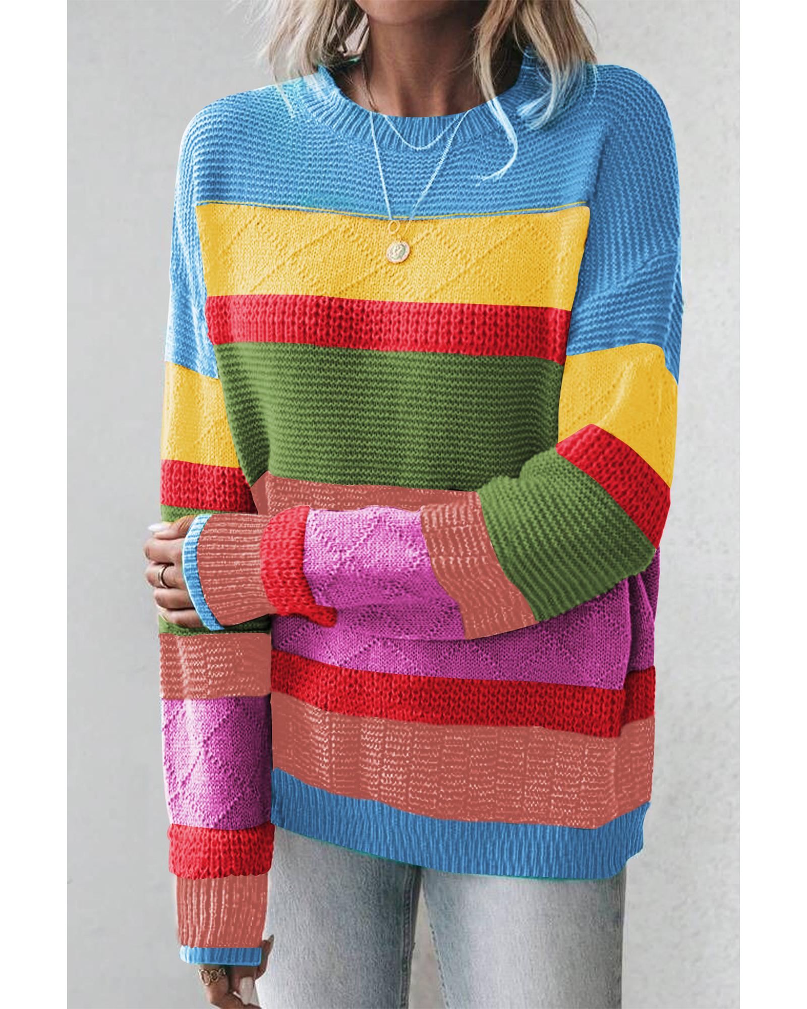 Light Blue Colorblock Mixed Textured Drop Shoulder Sweater – S