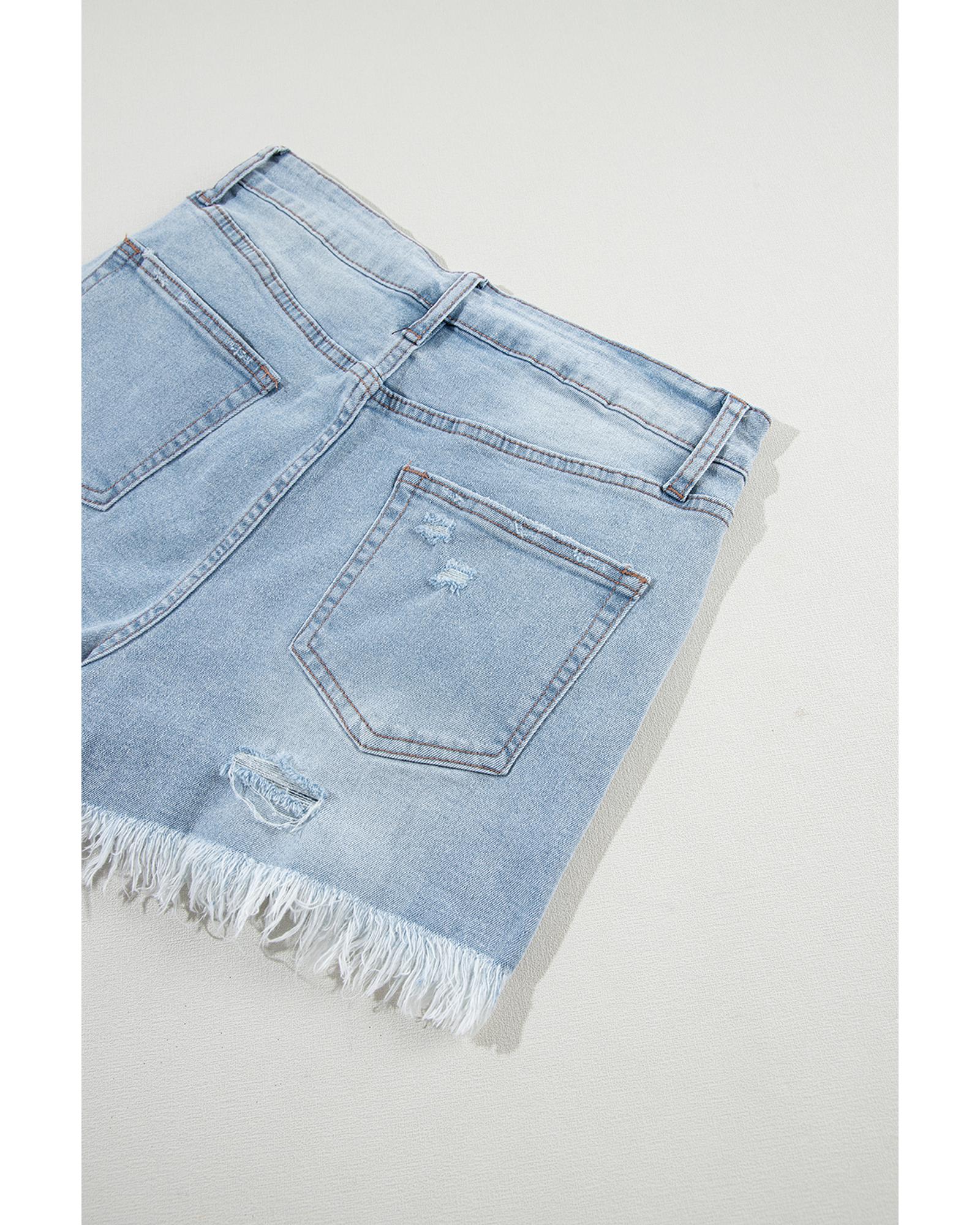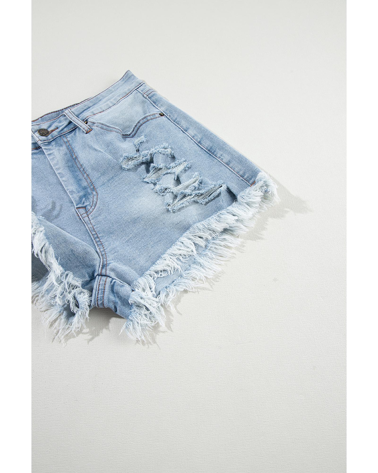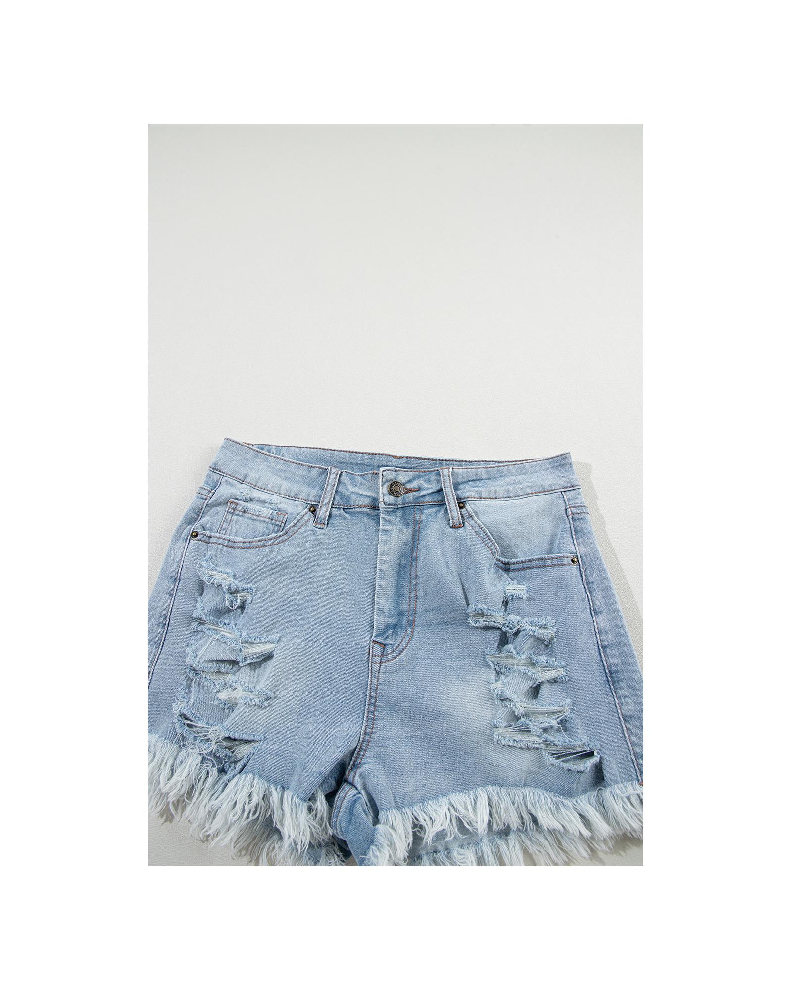 Light Blue Distressed Ripped Raw Hem High Waist Denim Shorts – 8 US