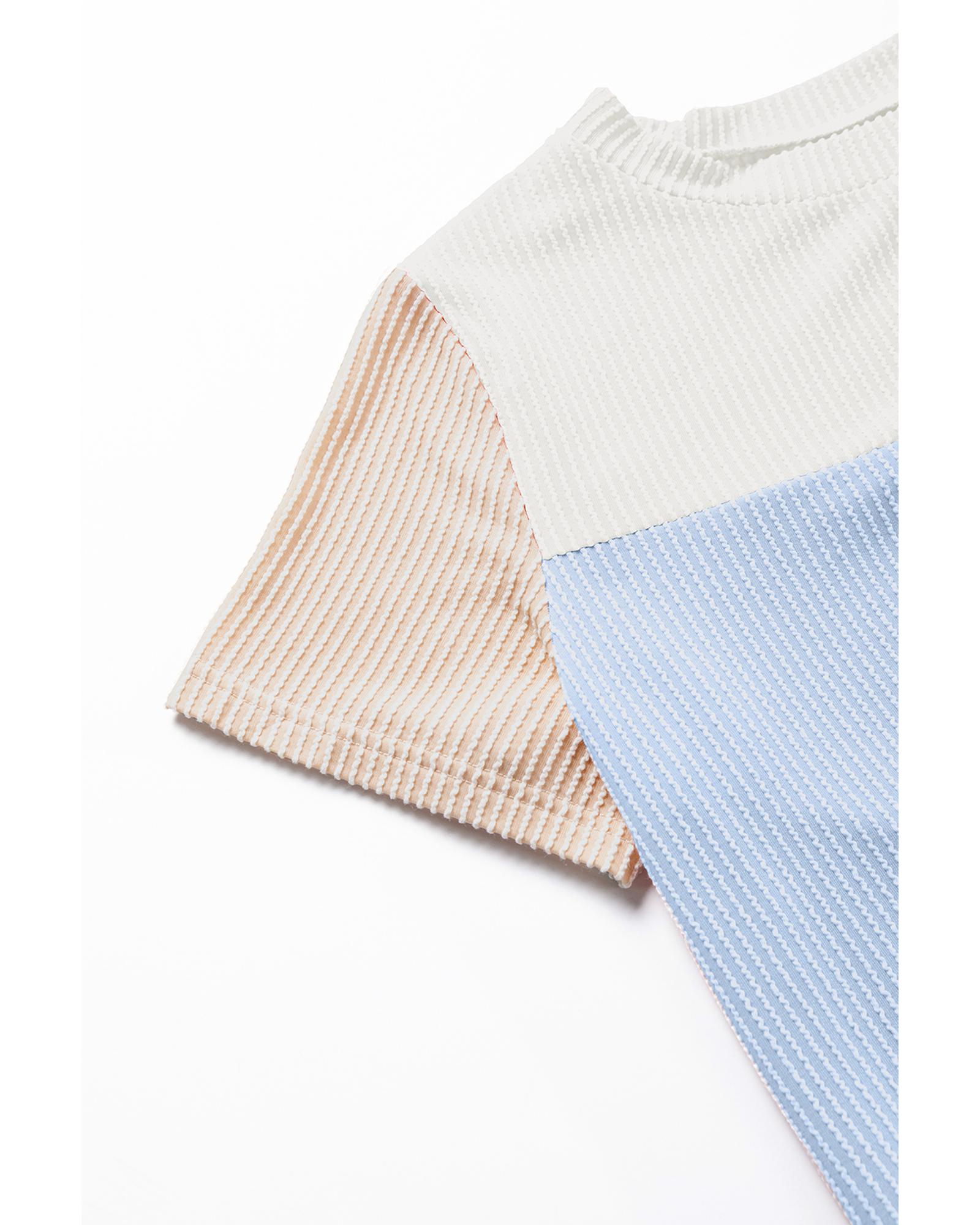 Light Blue Rib Textured Colorblock T Shirt – M