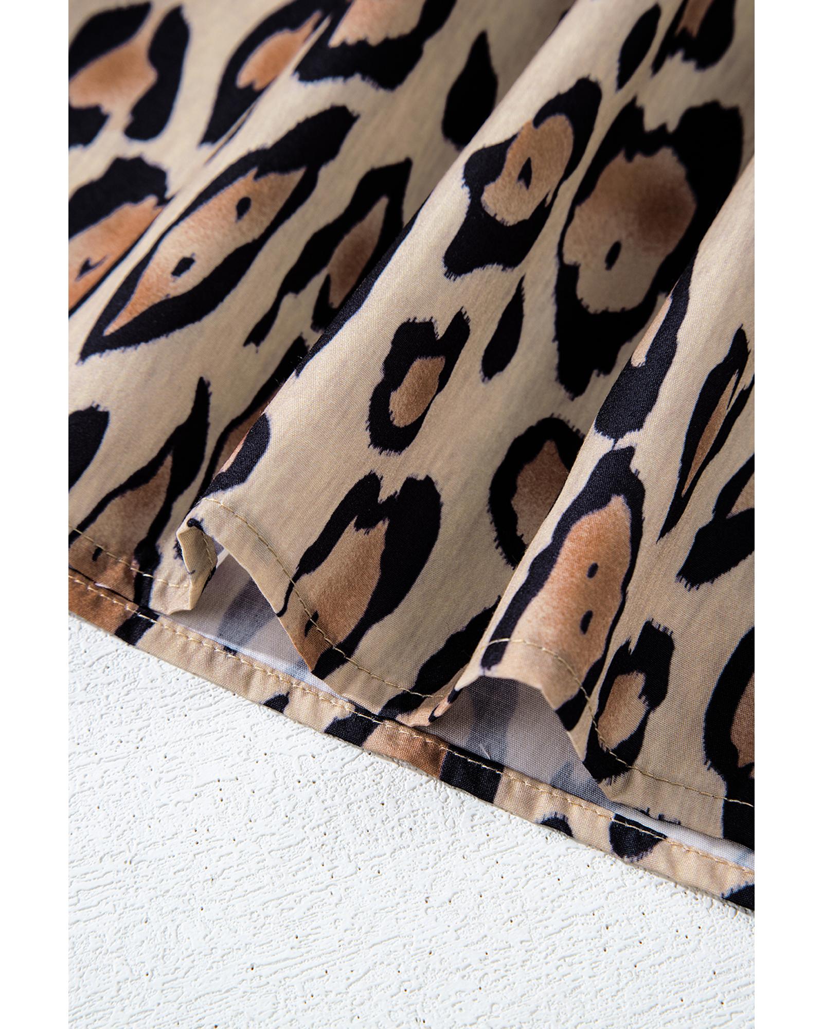 Light French Beige Oversized Leopard Print Balloon Sleeve Casual Shirt – S
