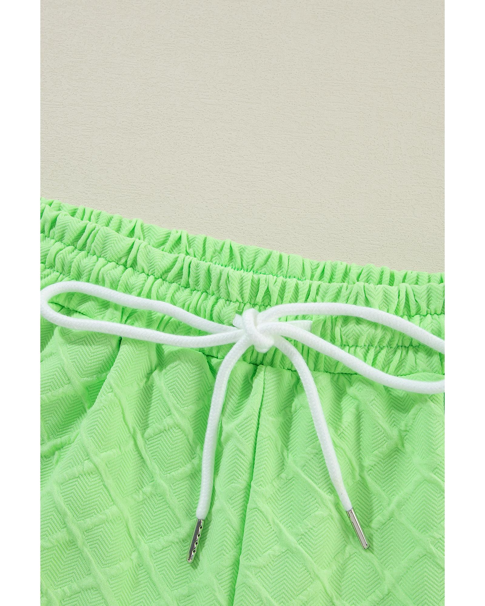 Light Green Checkered Textured Tee and Drawstring Shorts – S
