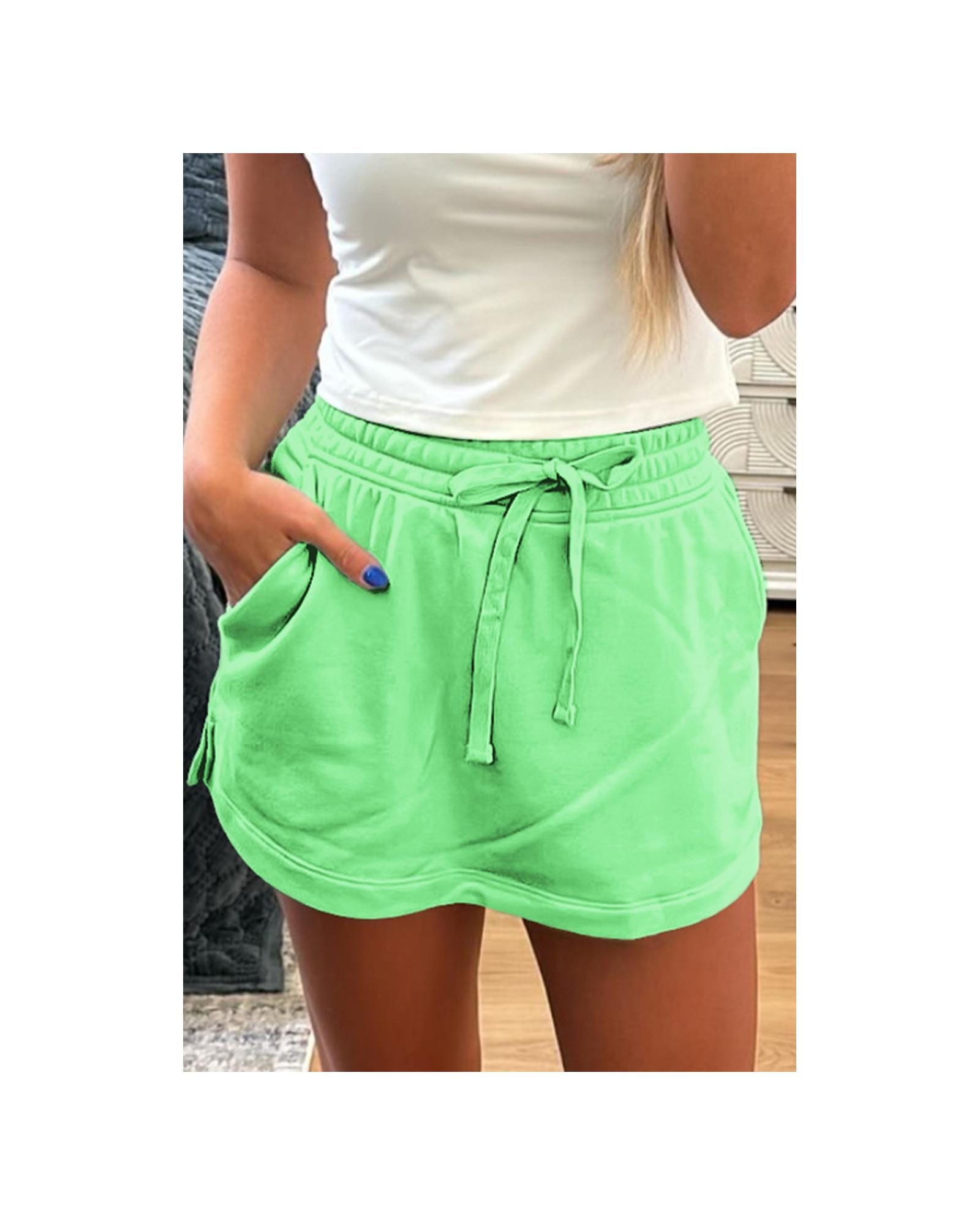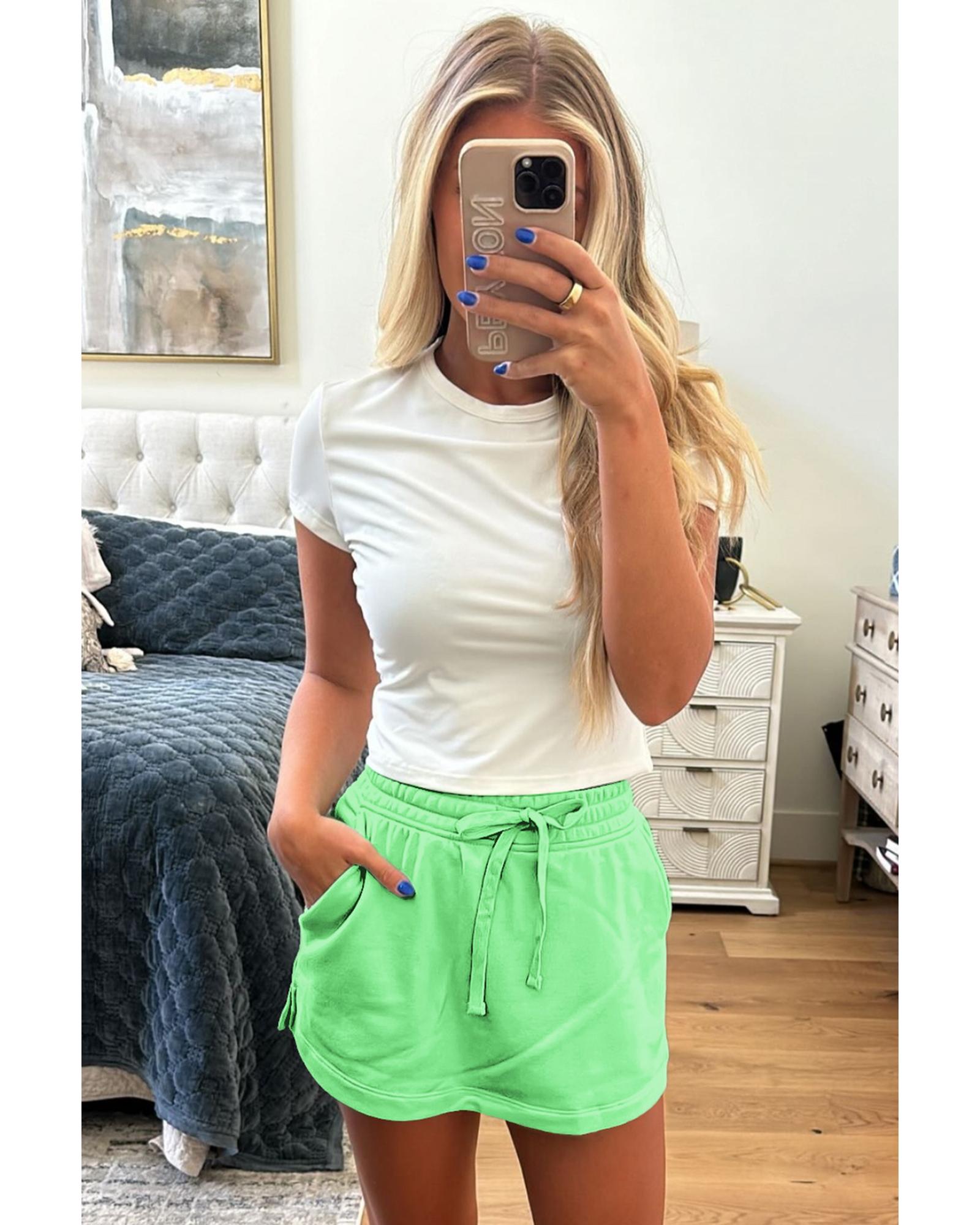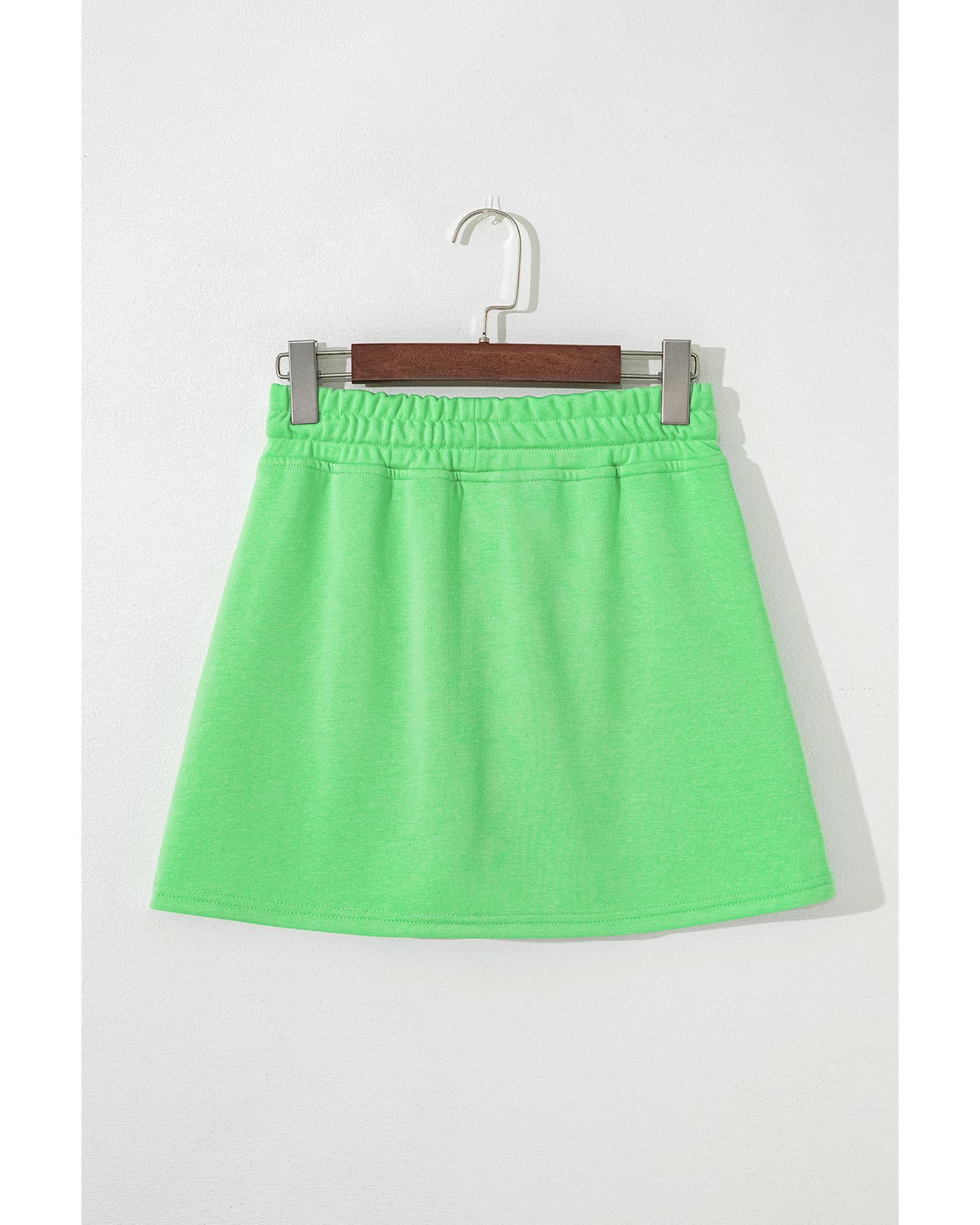 Light Green French Terry Drawstring Mini Skort with Pockets – L