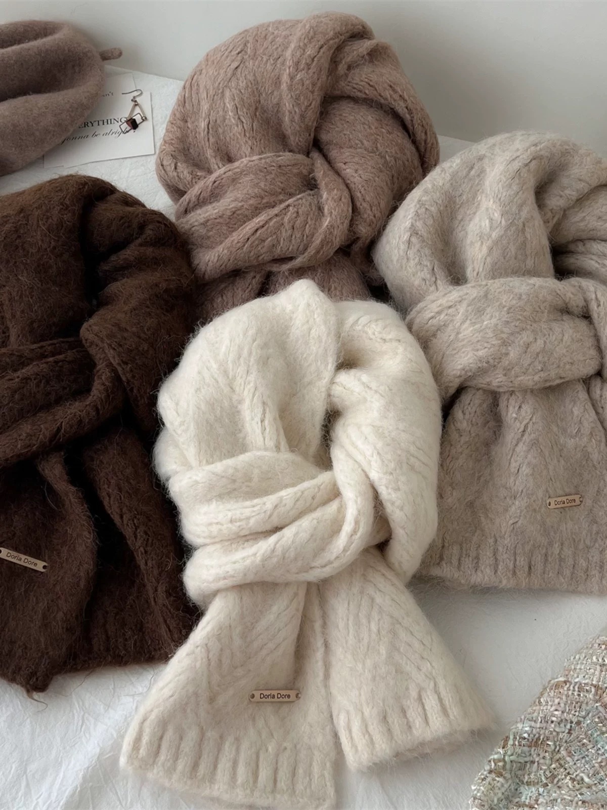 Light Grey Alpaca Wool Blend Solid Color Knitted Scarf for Women Winter New Style Student High Quality Couple Woolen Neck Warmer