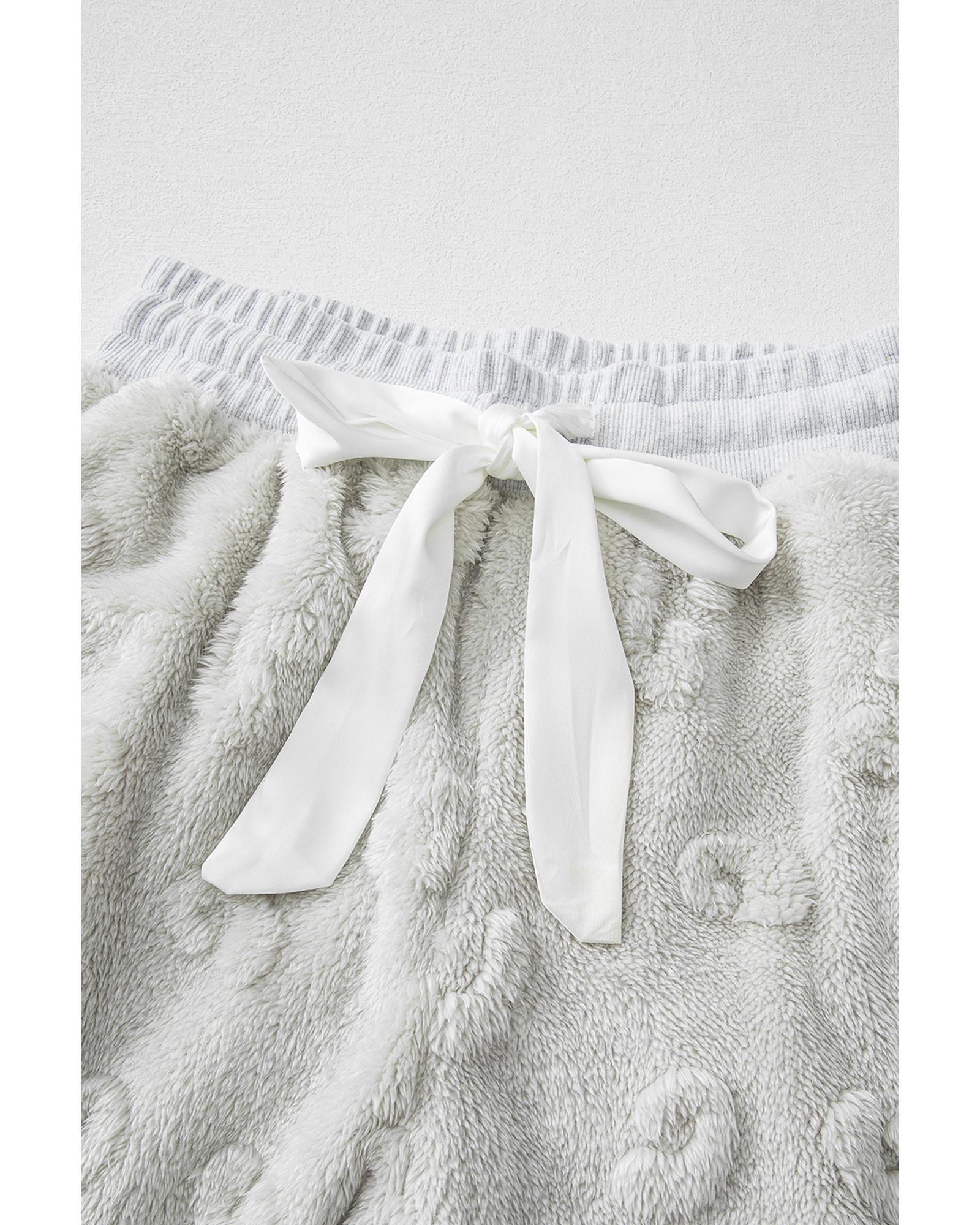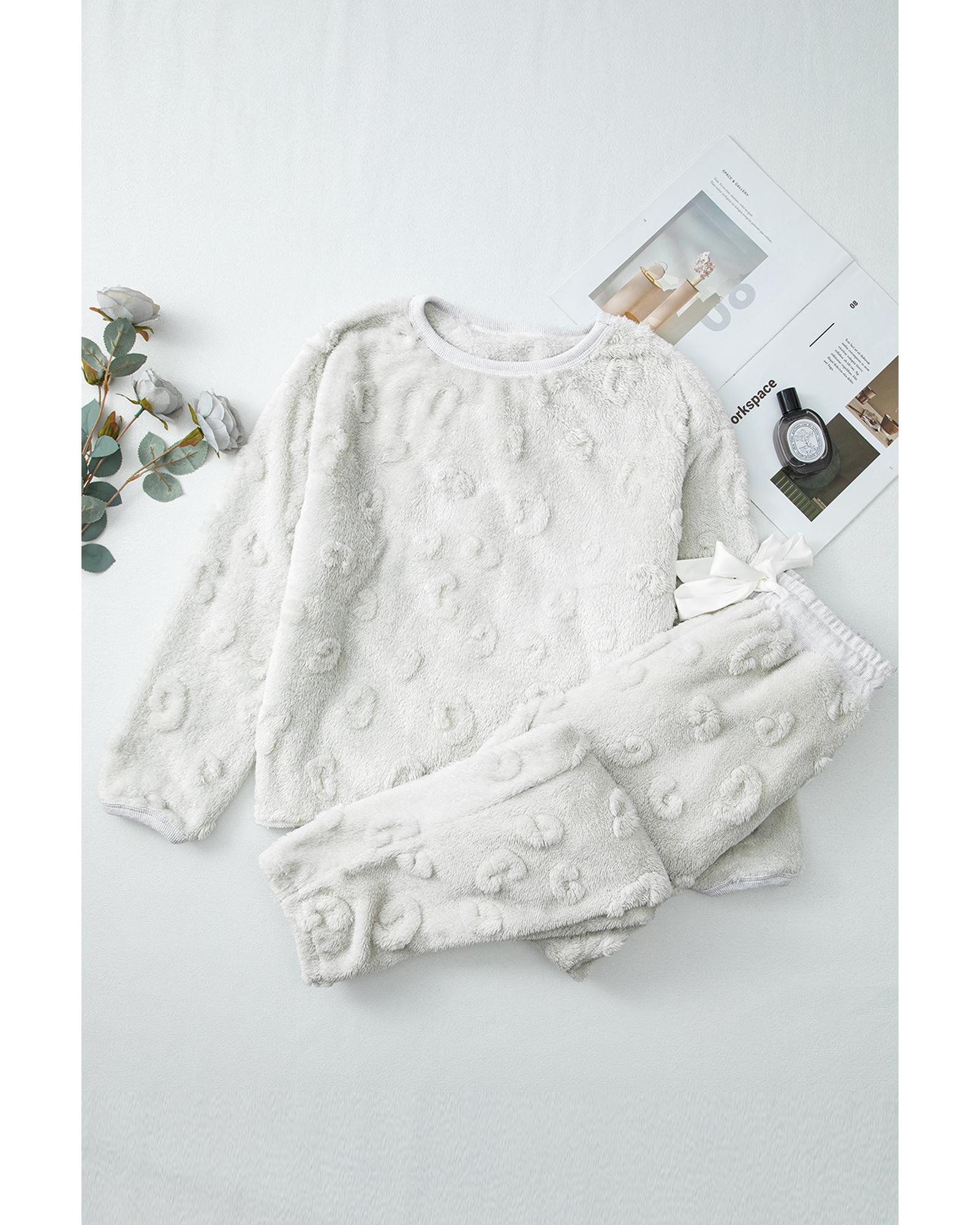 Light Grey Leopard Textured Loose Fit Fleece Lounge Set – XL