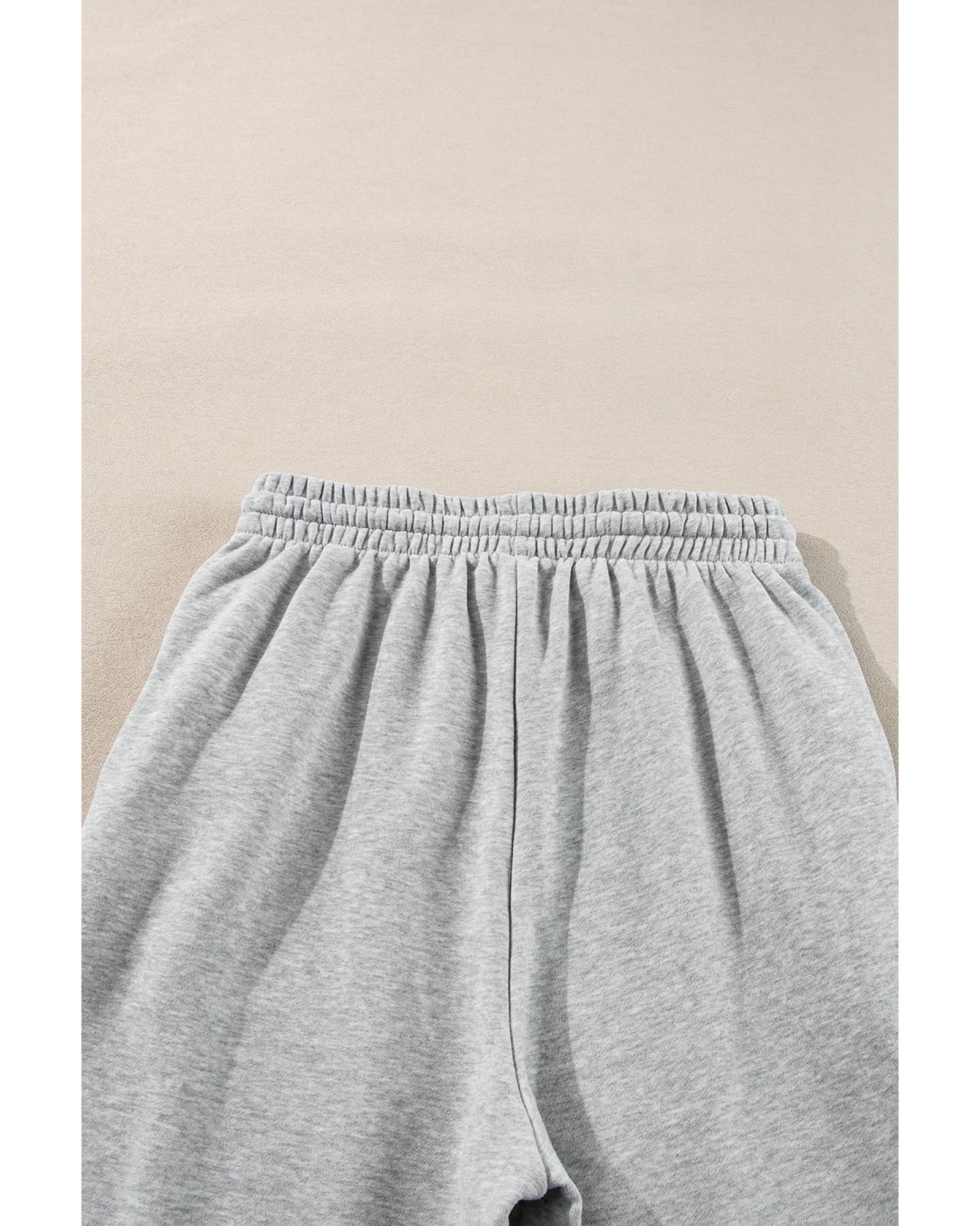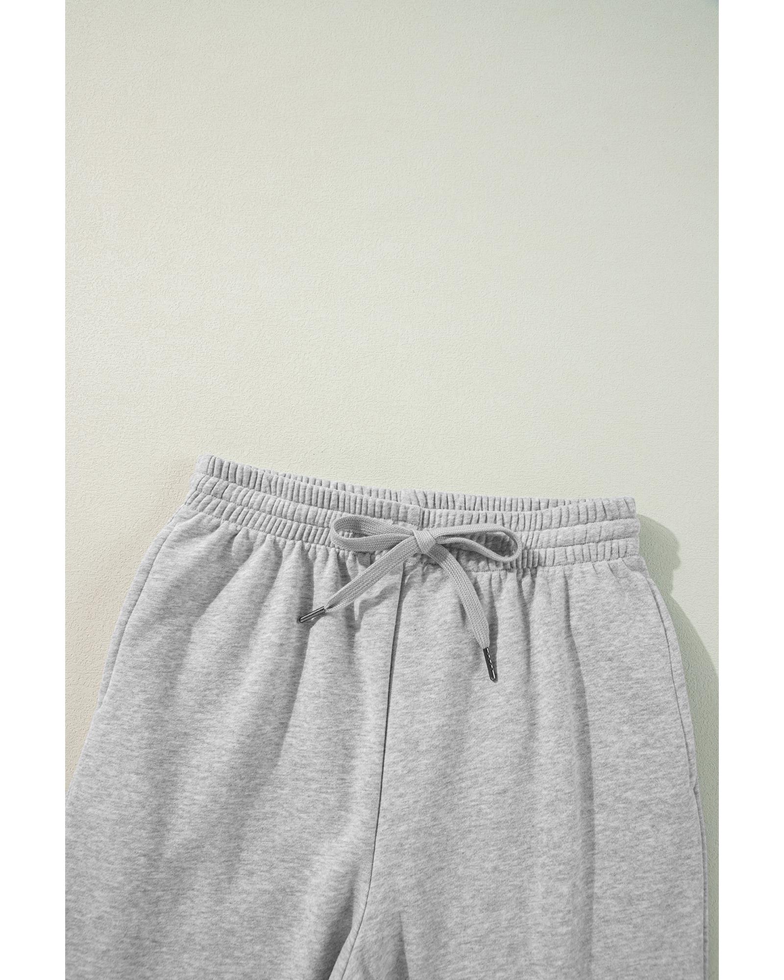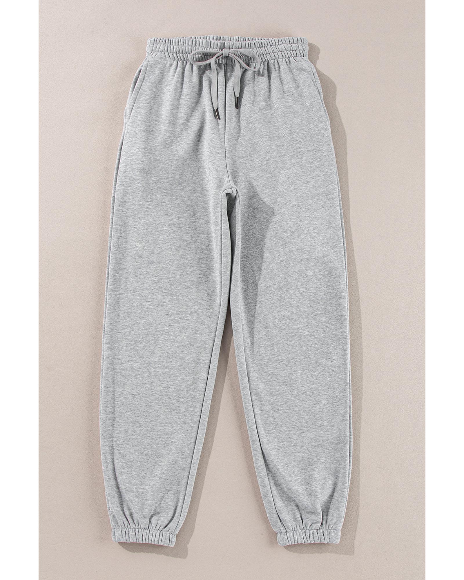 Light Grey Solid Color Fleece Lined Drawstring Waist Joggers – S