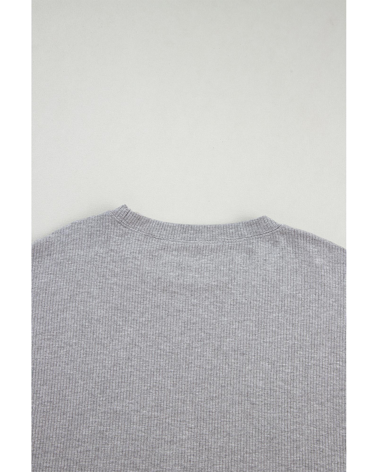 Gray Textured Loose Fit T Shirt and Drawstring Pants Set - 2XL