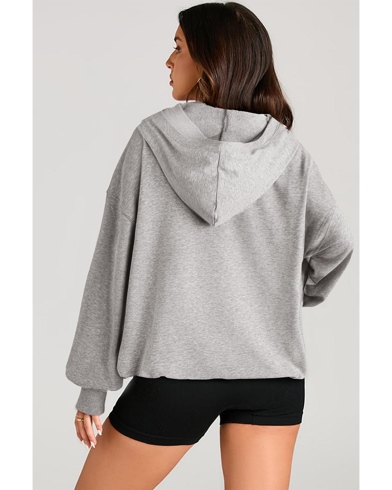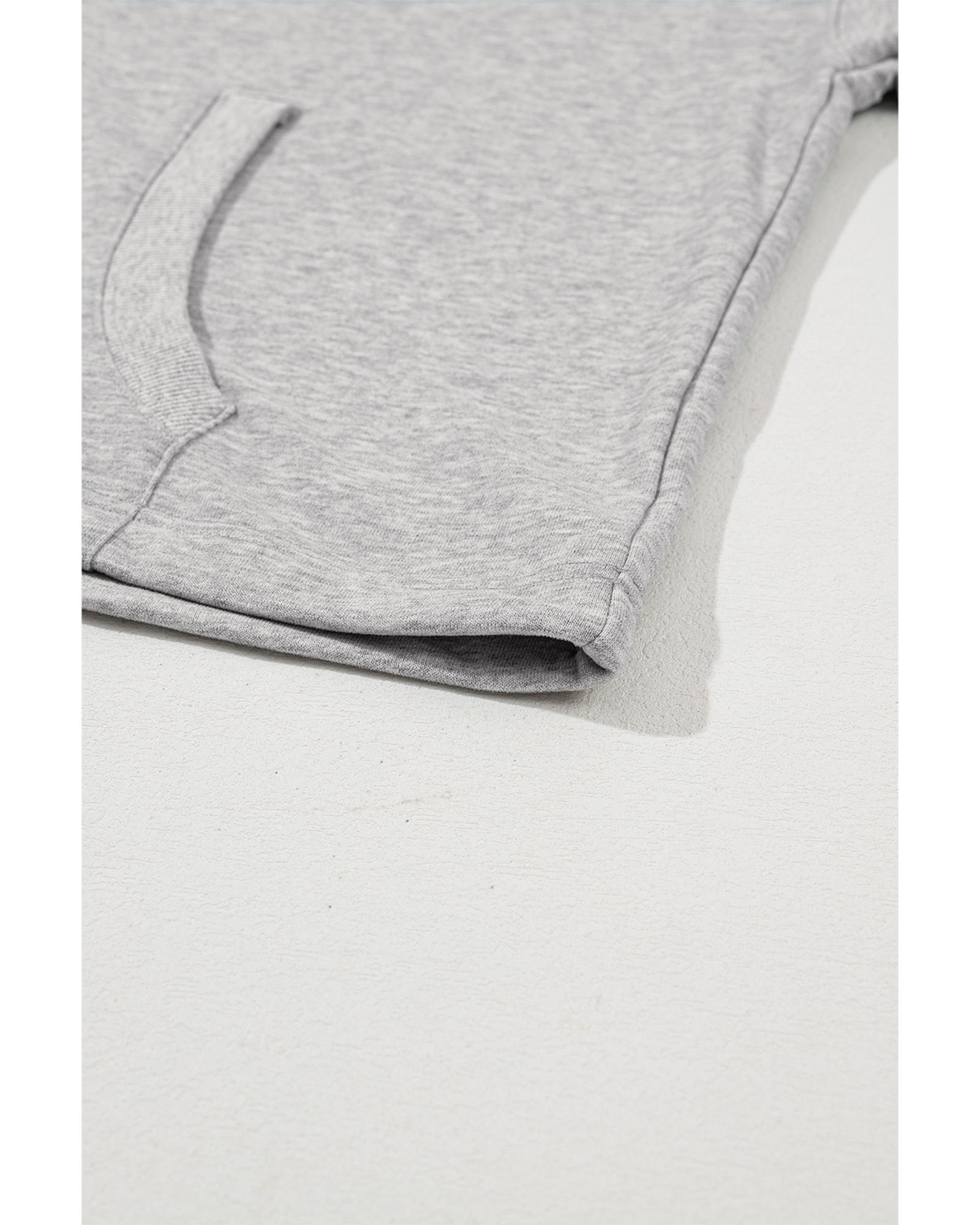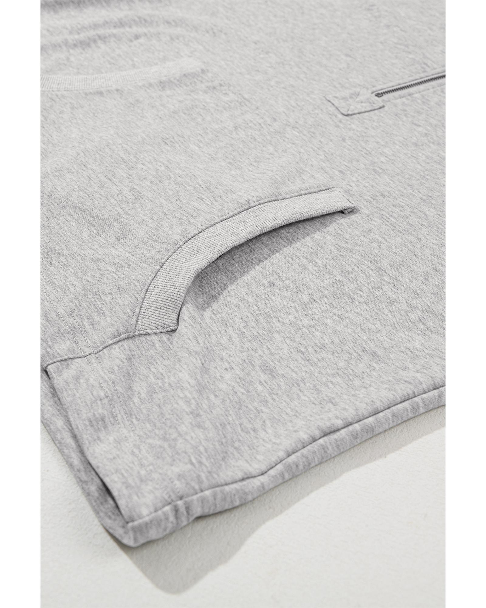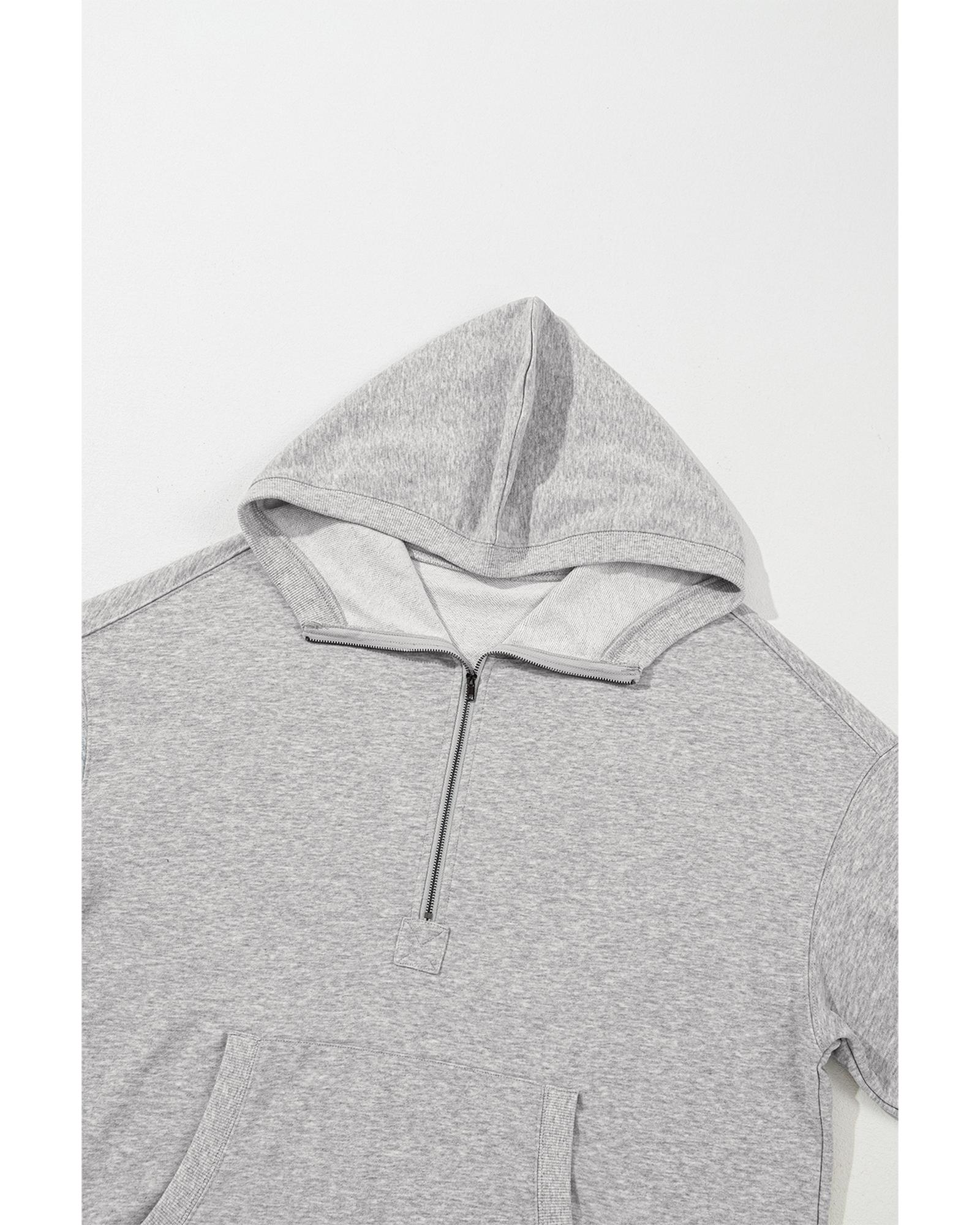 Light Grey Solid Kangaroo Pocket Half Zipper Oversized Hoodie – S