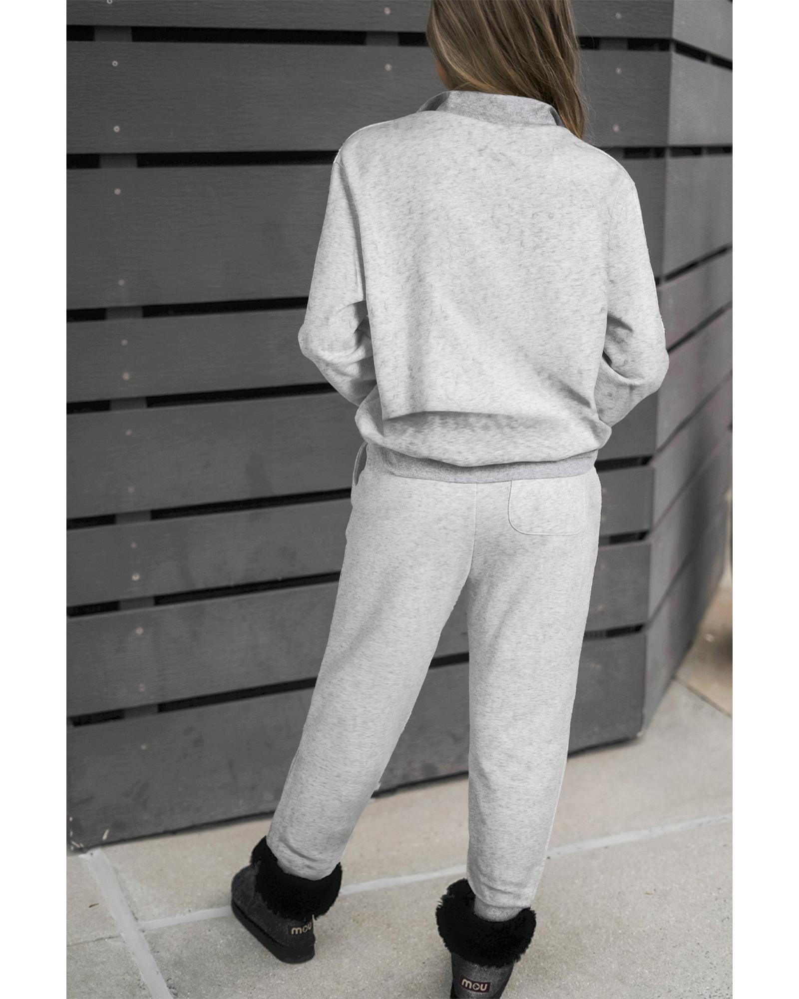 Light Grey Solid Zip Pullover Top and Drawstring Joggers Set – XL
