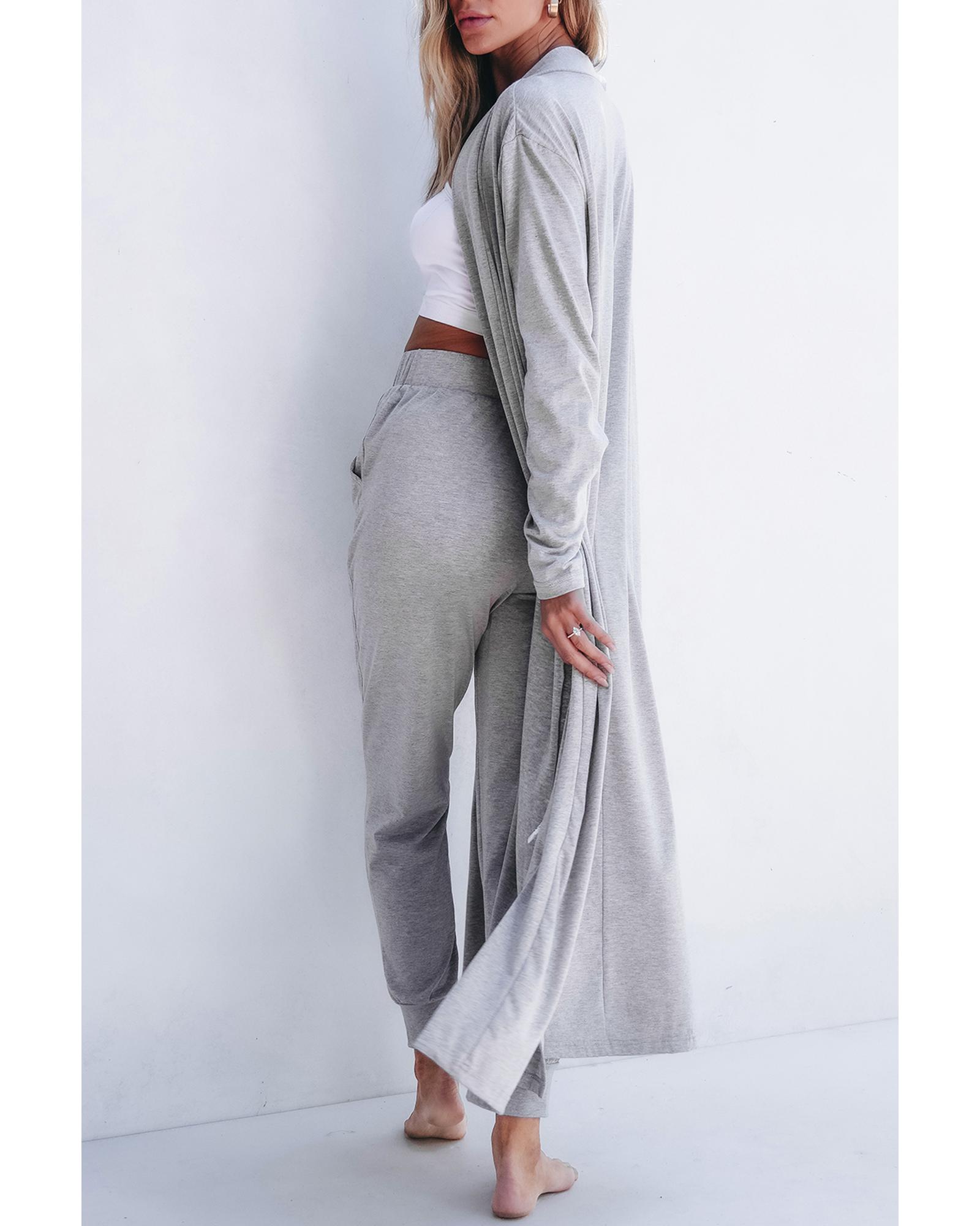 Light Grey Split Long Cardigan and Skinny Pants Lounge Set – S