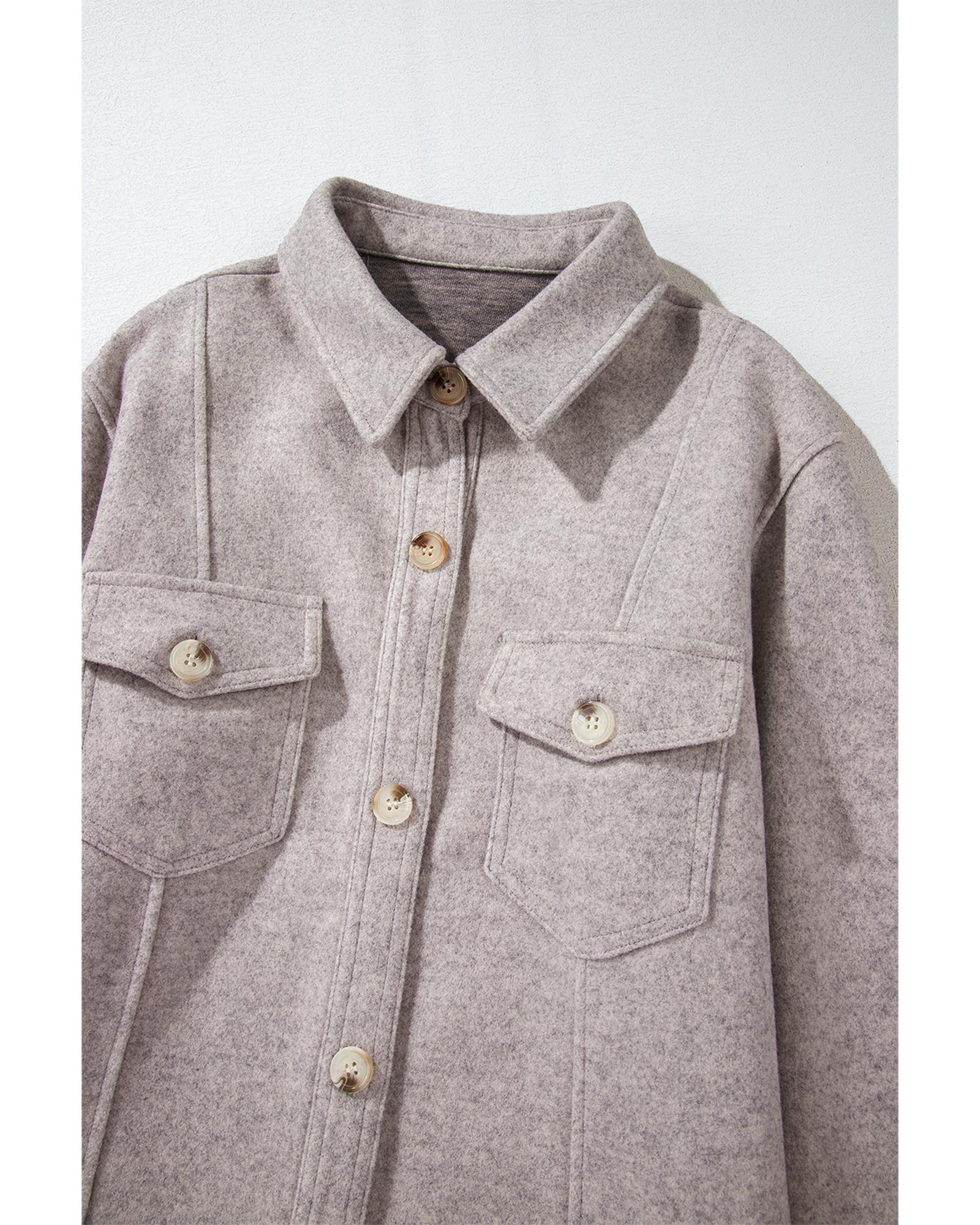 Light Grey Turn Down Collar Flap Pockets Buttoned Shacket – XL