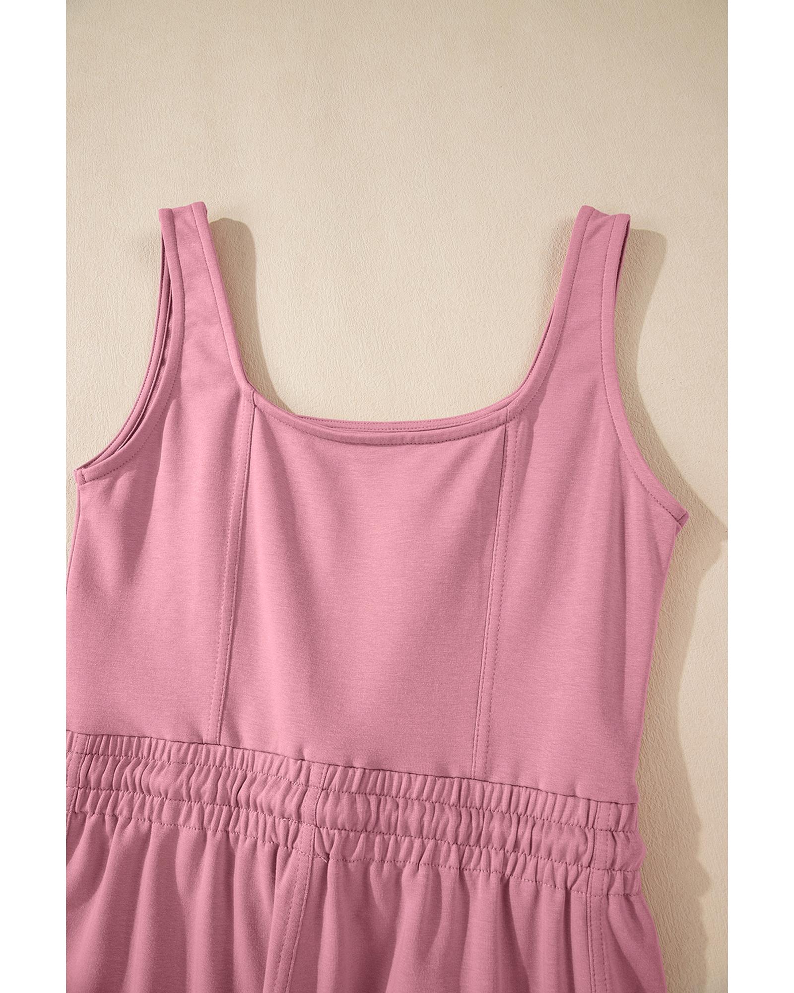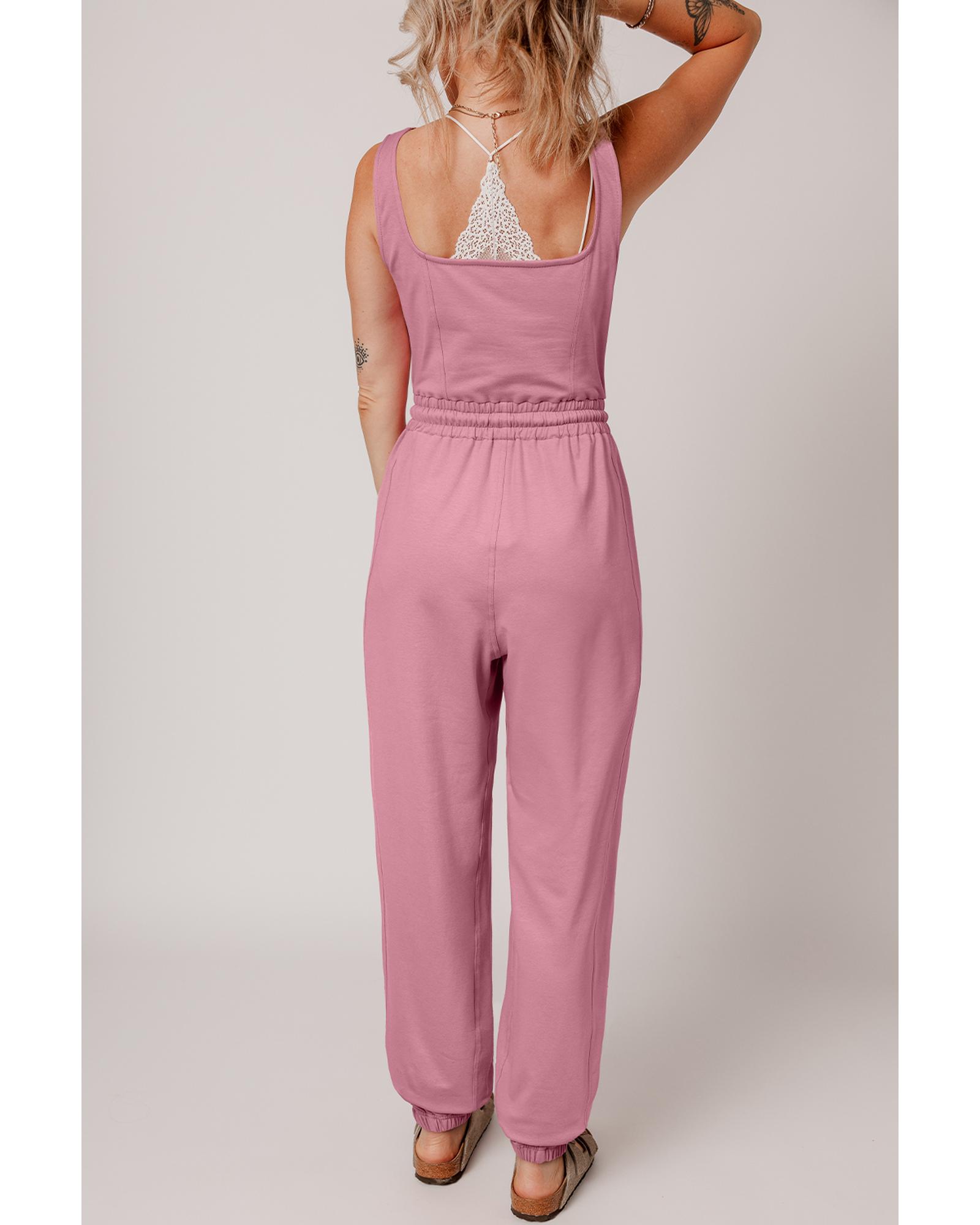 Light Pink Lace-up Elastic Waist Sleeveless Square Neck Jumpsuit – L