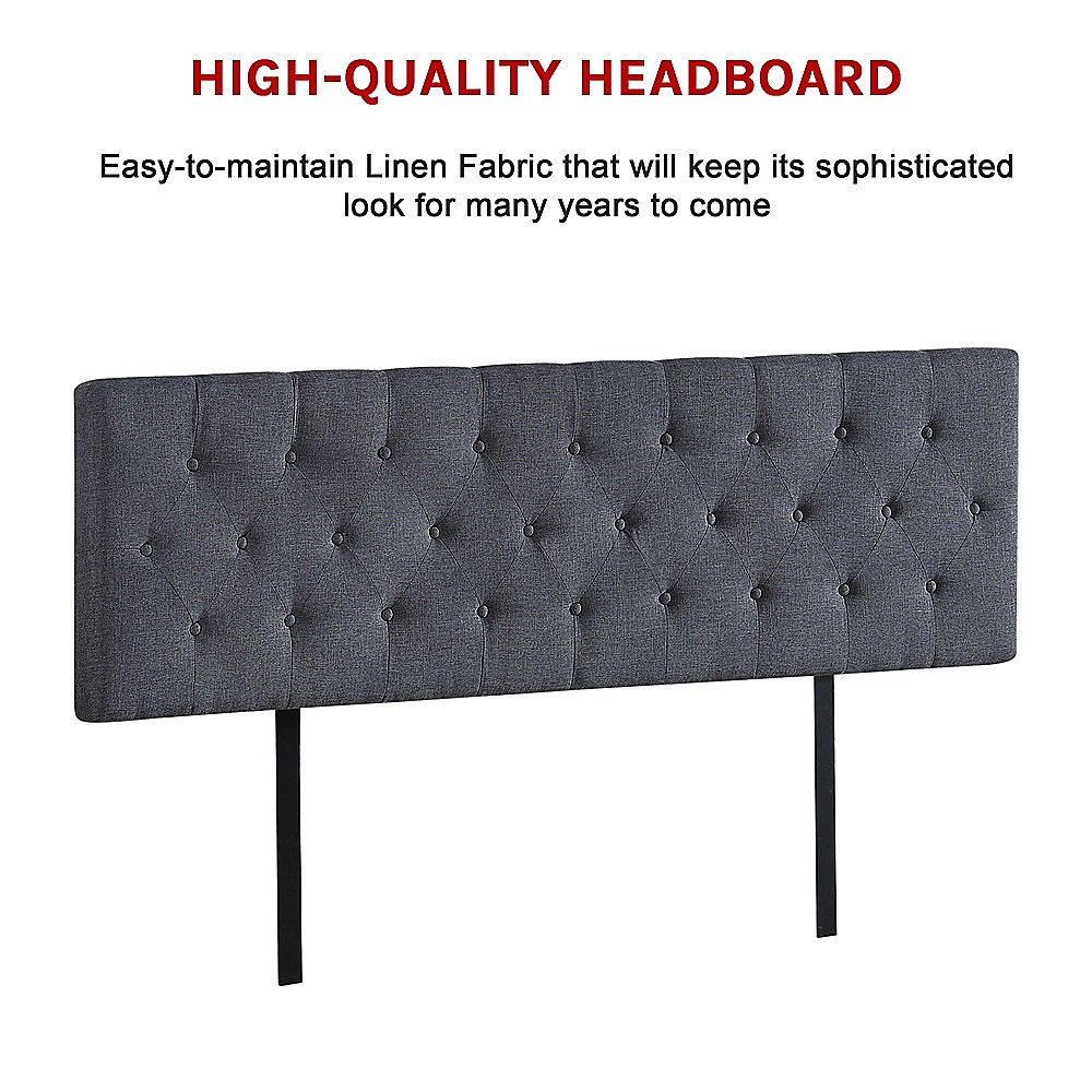 Linen Fabric King Bed Deluxe Headboard Bedhead – Grey