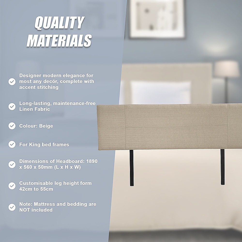Linen Fabric King Bed Headboard Bedhead – Beige