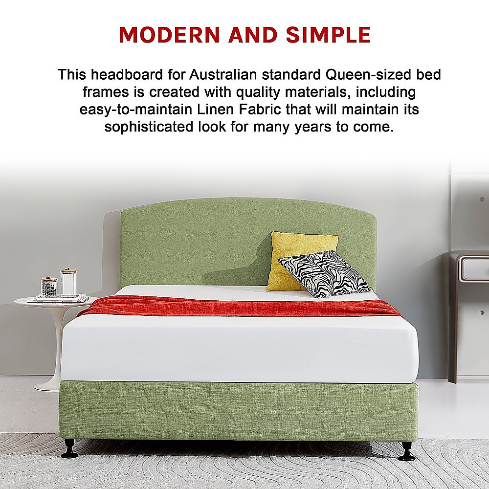 Linen Fabric Queen Bed Curved Headboard Bedhead – Olive Green