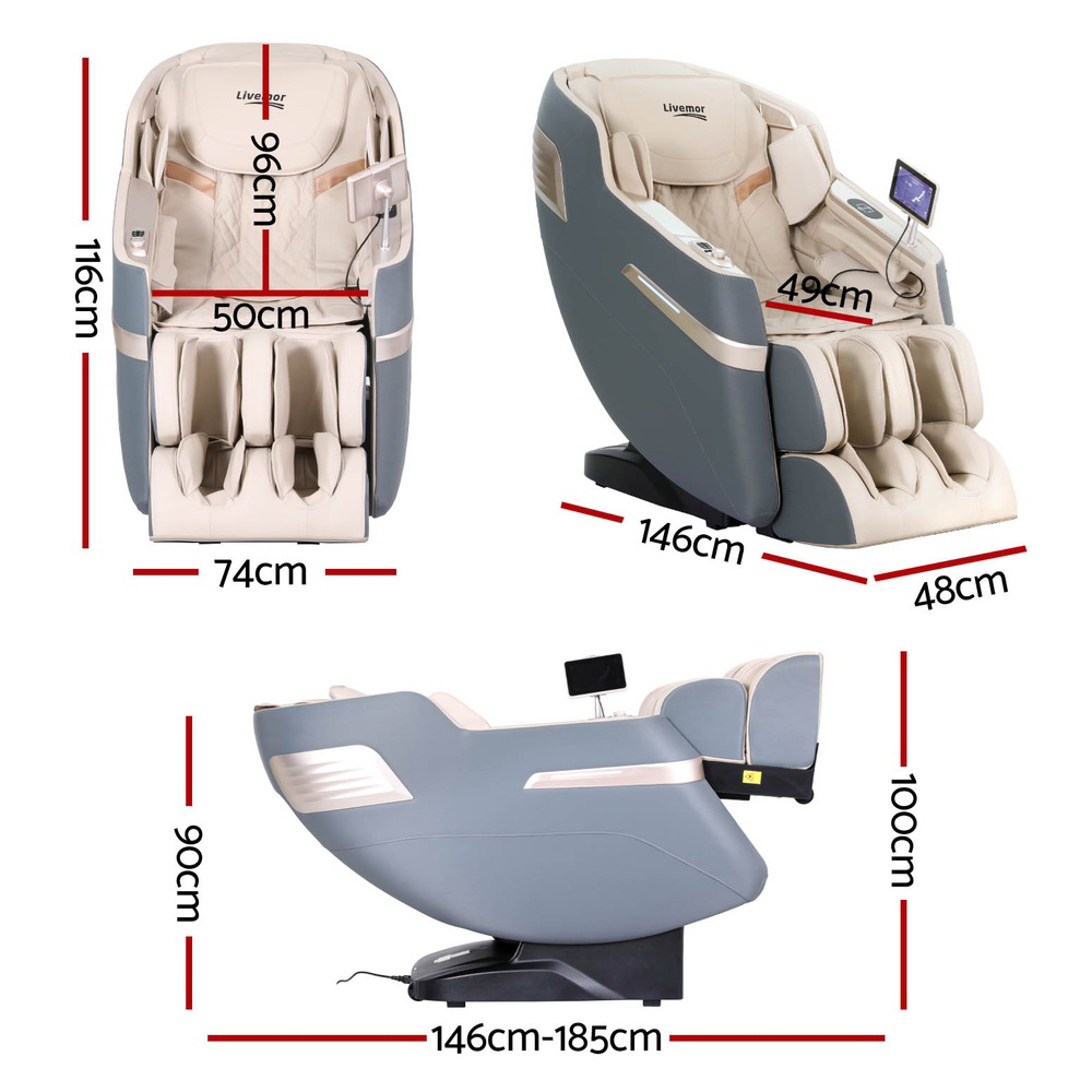 Livemor 4D Massage Chair Electric Recliner Home Massager Gray Sina