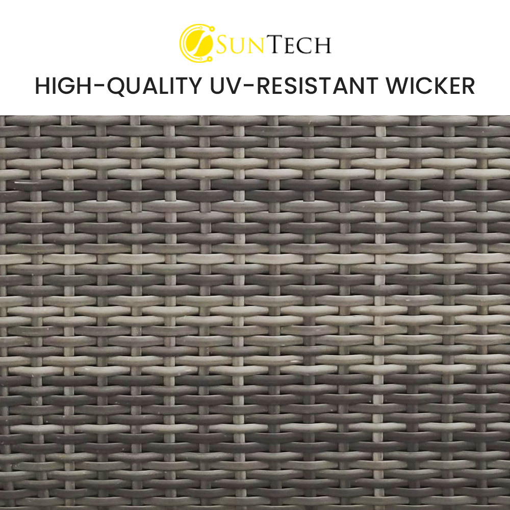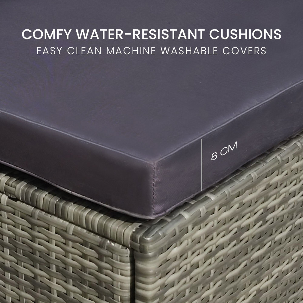 The set includes ultra-comfy 8cm thick water-resistant seat cushions, generous backrest cushioning and two throw cushions. The high-quality UV-resistant handwoven Suntech wicker in Marl Grey weave has a premium natural textured look. With a modular design comprising two sofas and two corner sofas, you can set it up in whatever configuration works best for you, making this London Rattan outdoor lounge setting a great addition to any outdoor space.