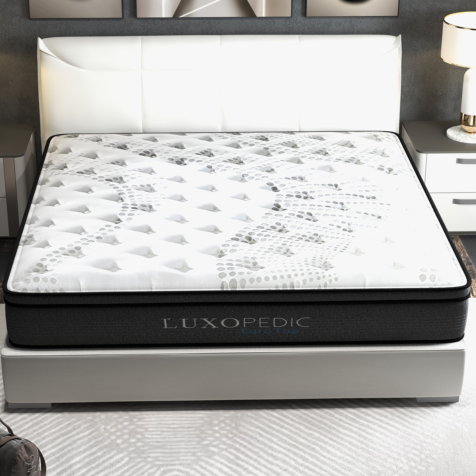 Luxopedic Pocket Spring Mattress 5 Zone 32CM Euro Top Memory Foam Medium Firm – Double – White Grey