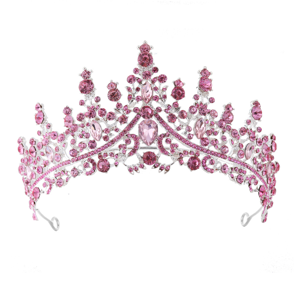 Luxury Full Rhinestone Bridal Tiara – Elegant Alloy Crown Hairband with 3A Grade Crystals Pink