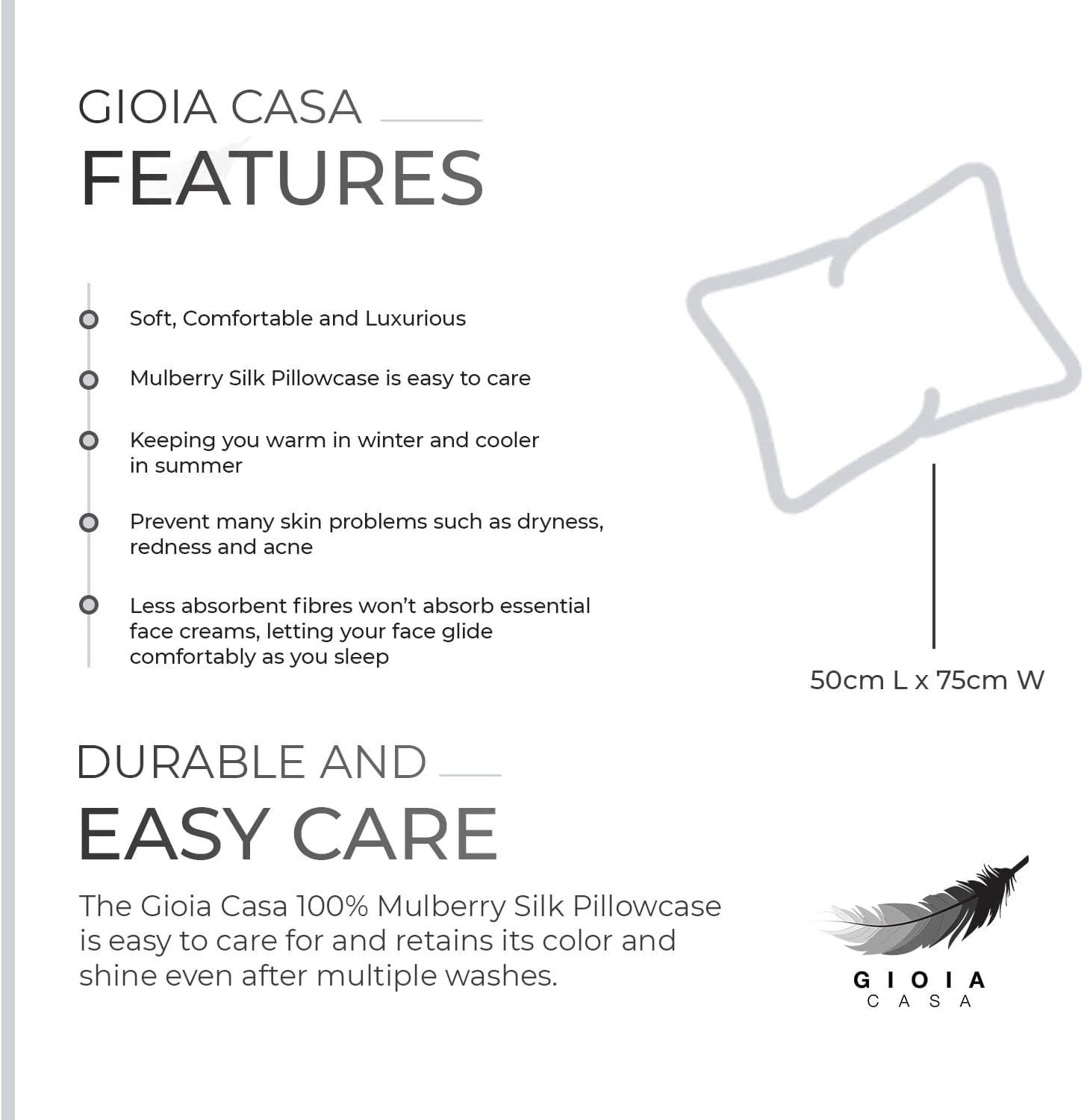 Gioia Casa Luxury Pillowcase – 100% Pure Mulberry Silk on Both Sides – Soft Anti-Wrinkle, Hypoallergenic, Washable Bed Pillowcases – Premium Pillow Cover for Hair and Skin Protection