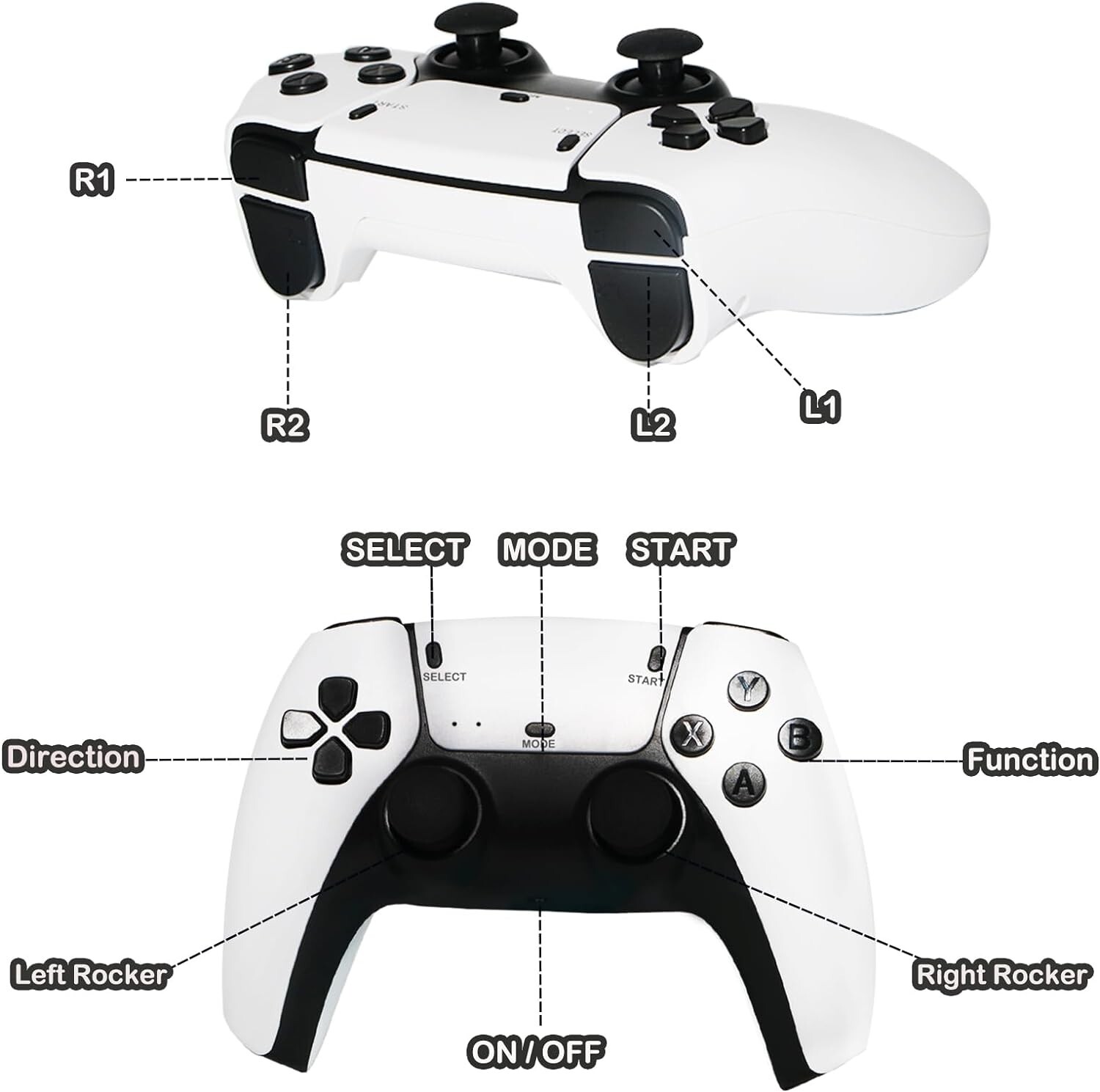 2.4GHz Dual Wireless ControllerD:ual 2.4G wireless controllers, high sensitivity, no complicated installation or setup required, perfect for video gamers of all ages. This game stick lengthens the handle, which feels better and is more convenient to operate; In addition, we have a search function – you can add a space to search for games; What’s more, it supports wireless two-player games, and after adding a hub, it can support up to four people playing games together.